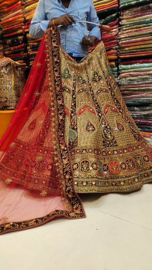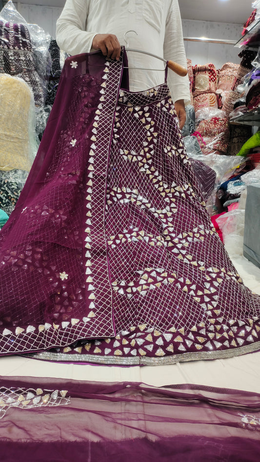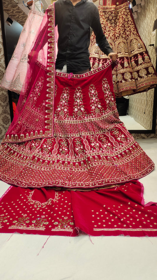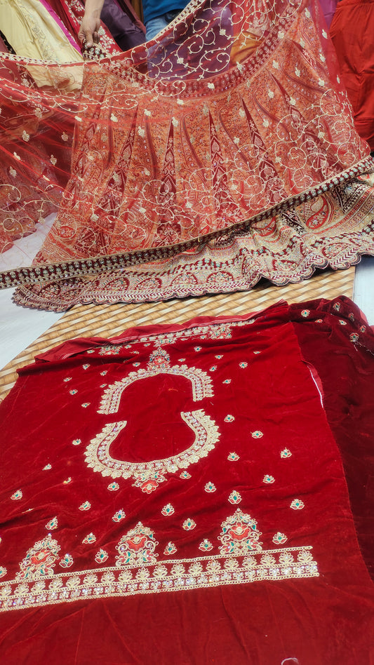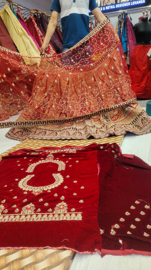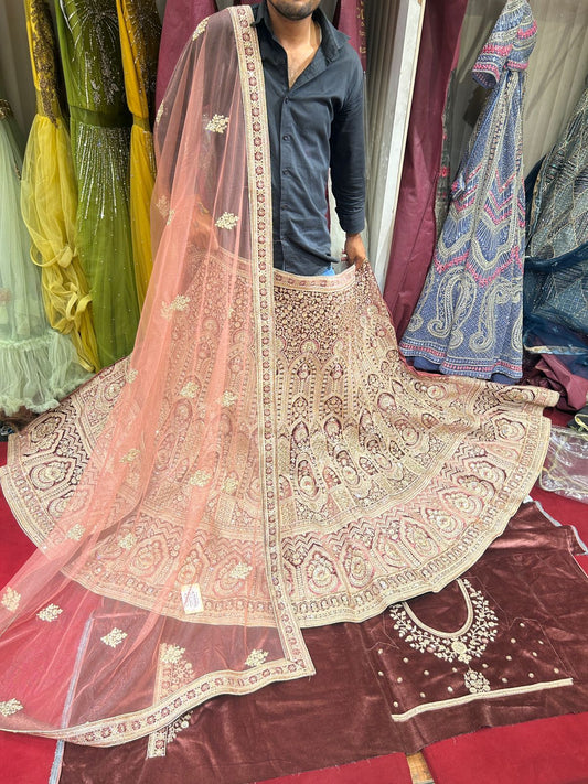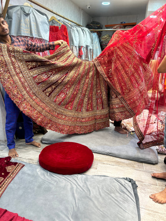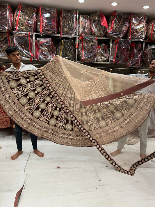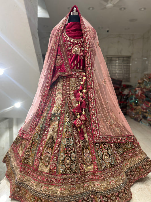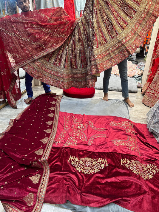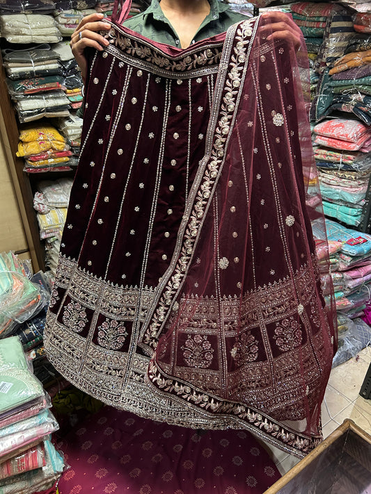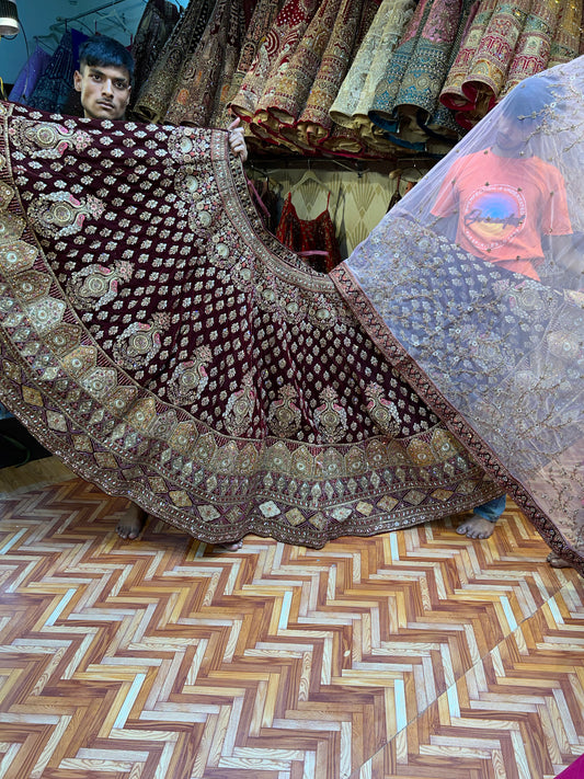 16 kali Heavy work Charming dark maroon crop top Lehenga
