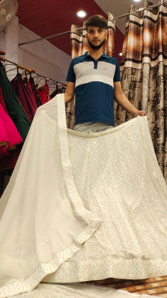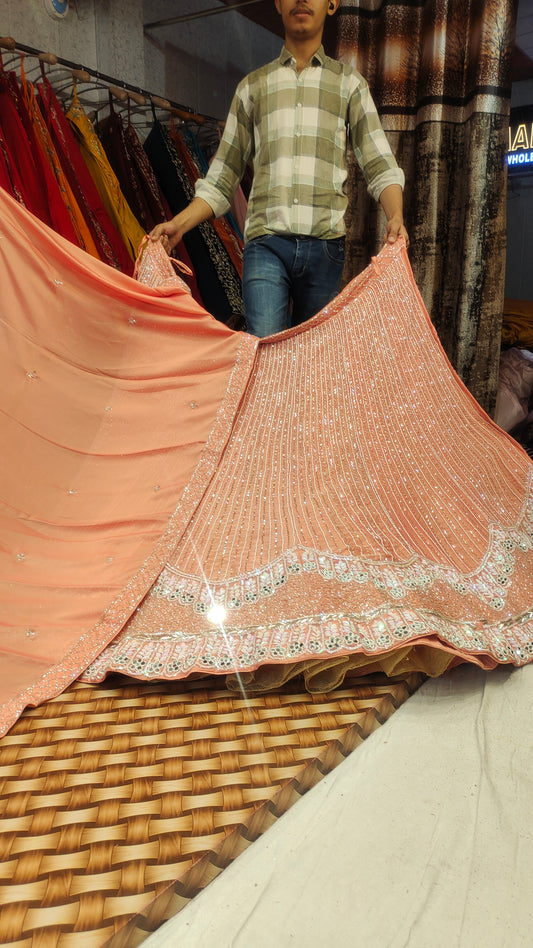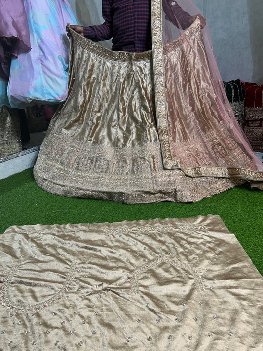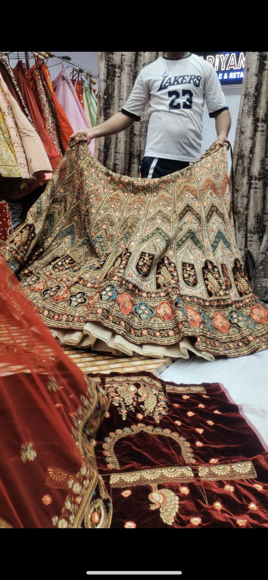16 kali Heavy work Tremendous Beige crop top Lehenga