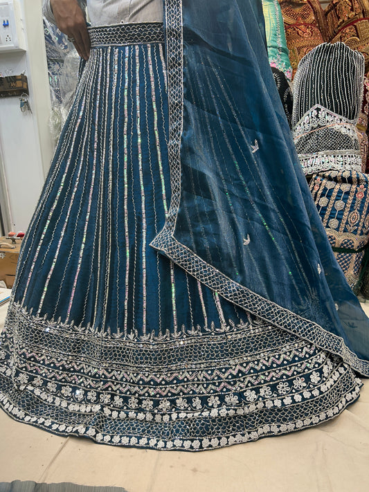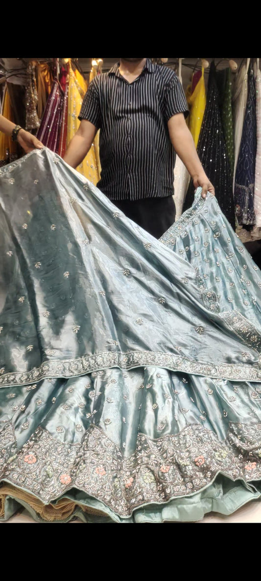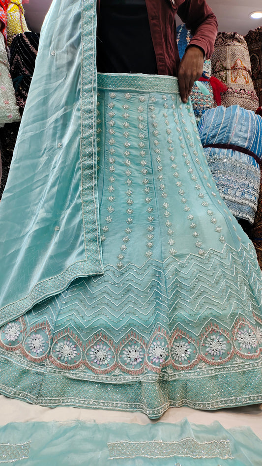 12 kali heavy work Good looking sky blue crop top Lehenga