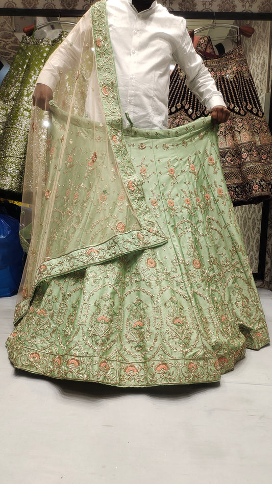 Silk Fabric Beads & Sequins green Embroidery Lehenga Choli