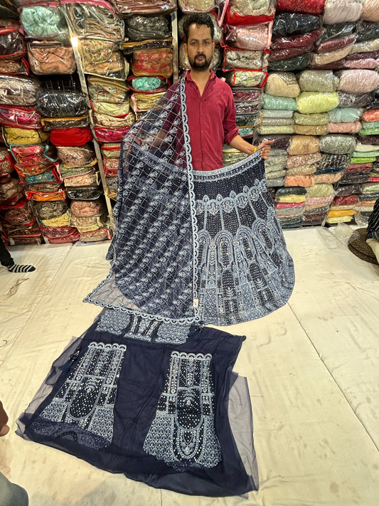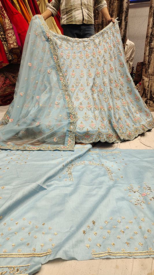 Teal Blue Elegant wedding lehenga with zariwork Silk lehenga with Soft Net dupatta 2144