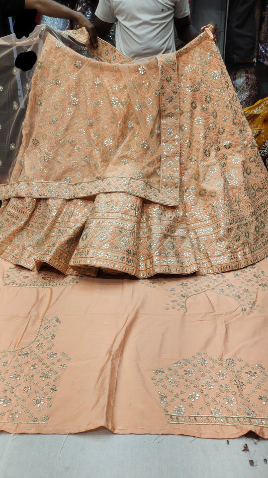 Pink Wedding Lehenga with Leaf Embroidery Silk lehenga with Soft Net dupatta 2144