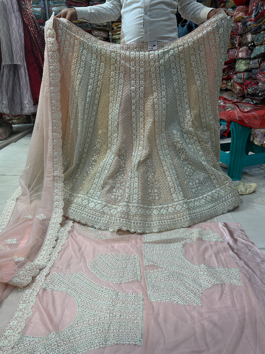 Something differentlight pink Peach blue Ready to wear Crop Top Lehenga