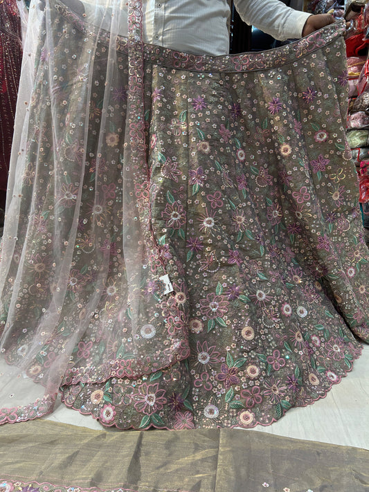 Something different Mehendi green Firozi green Pink Rust orange Rani pink Net Lehenga