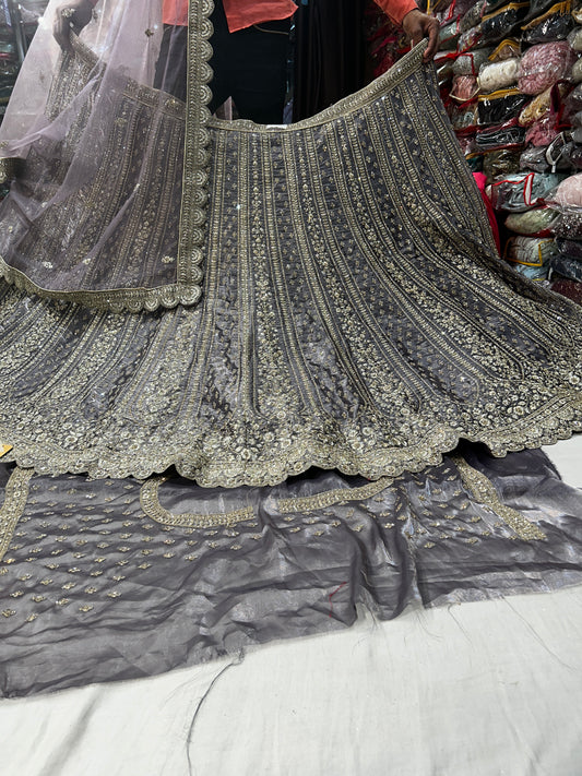 Astonishing Chiku golden Rust orange Gajri pink Mehendi green purple Net Lehenga