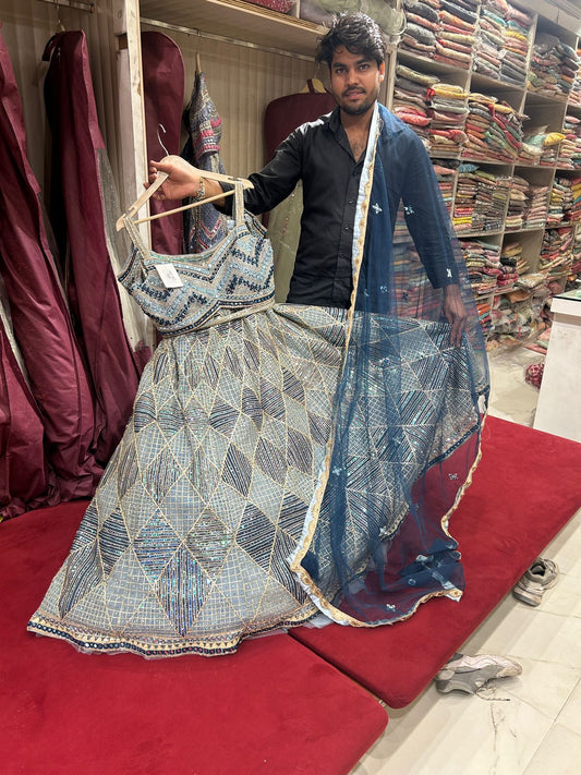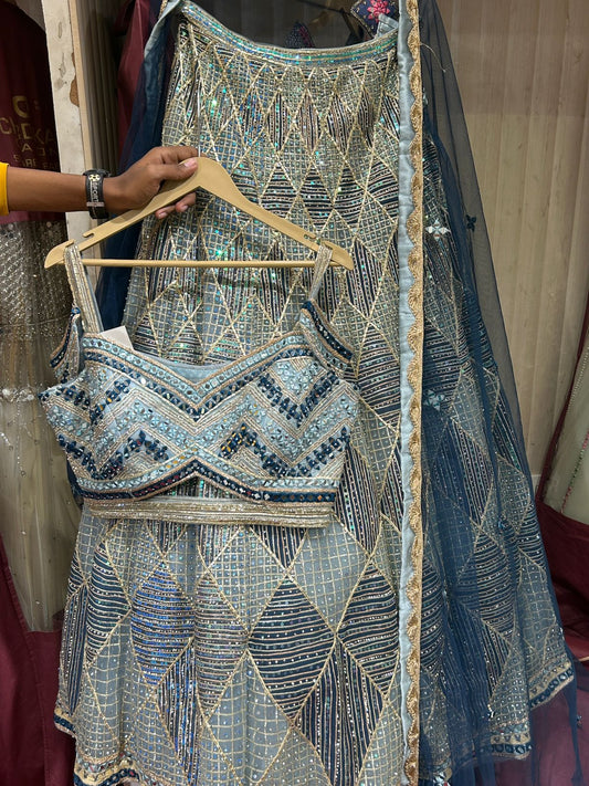 Khoobsurat Blue Pdp Ready to wear Crop top Lehenga