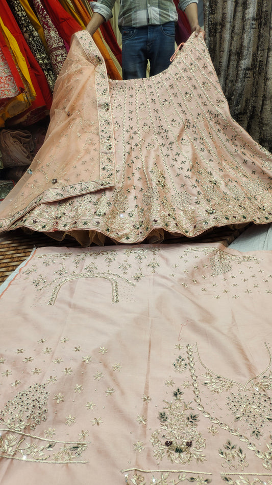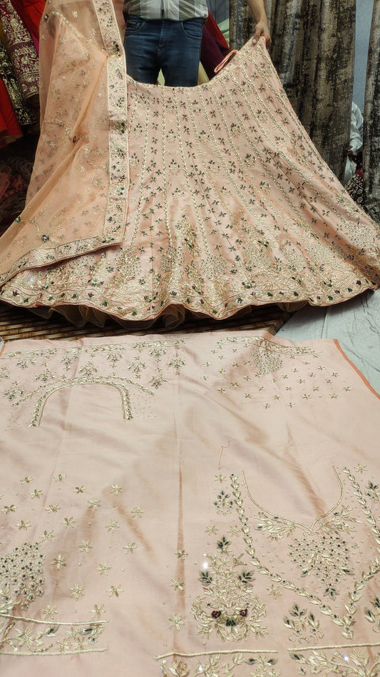 Silk Fabric Beads & Sequence Embroidered Light pink Lehenga Choli