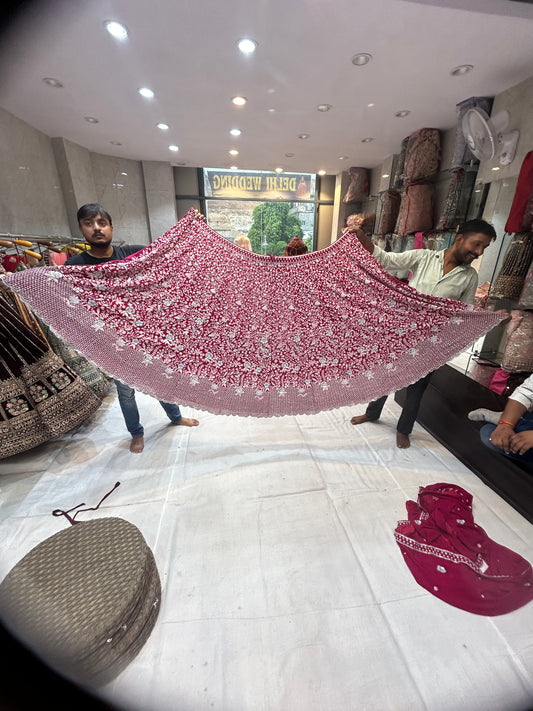 Designer Rani pink Maroon Dark Maroon Red Doli Barat Double Duptta Velvet Bridal Lehenga