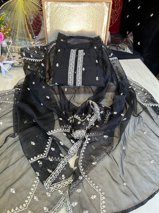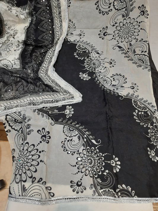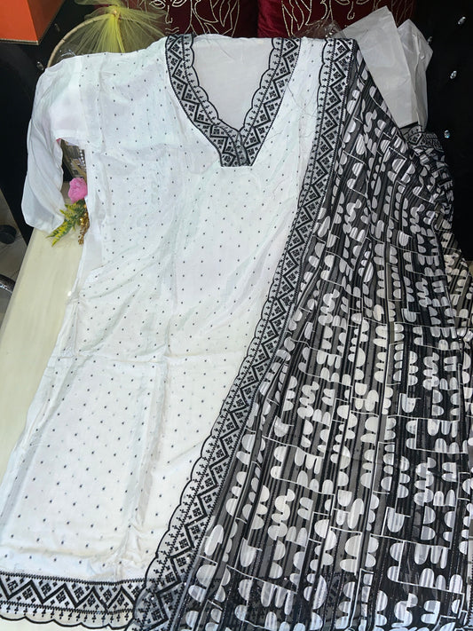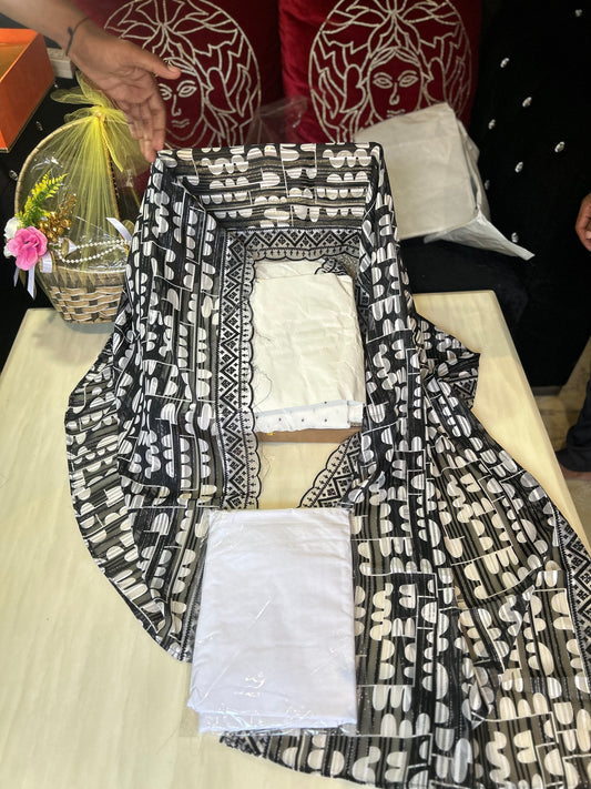 Khoobsurat white black unstitched salwar suit dress material(free size)