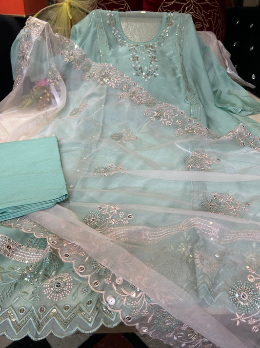 Pretty sky blue green pink Fancy Salwar suit (free size)