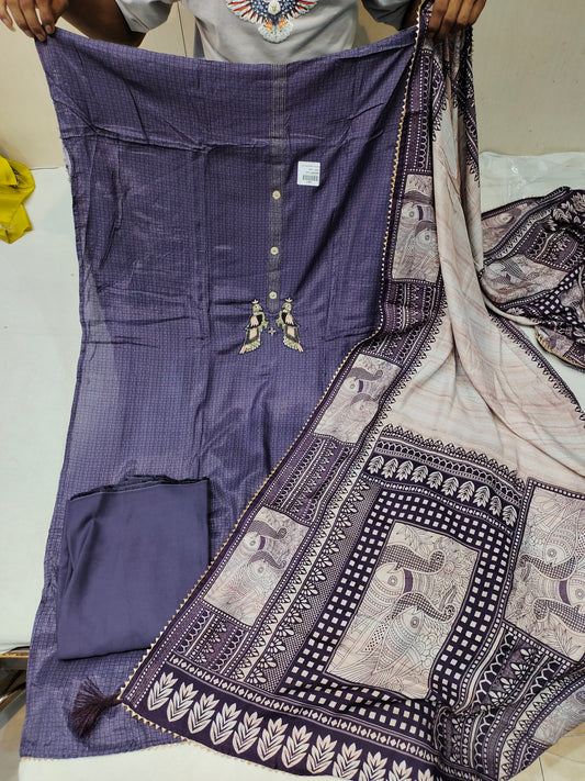 Fabulous blue green yellow wine unstitched salwar suit dress material (free size)