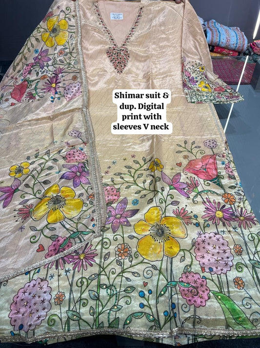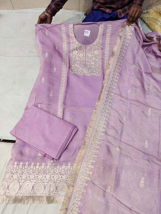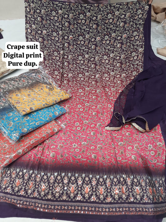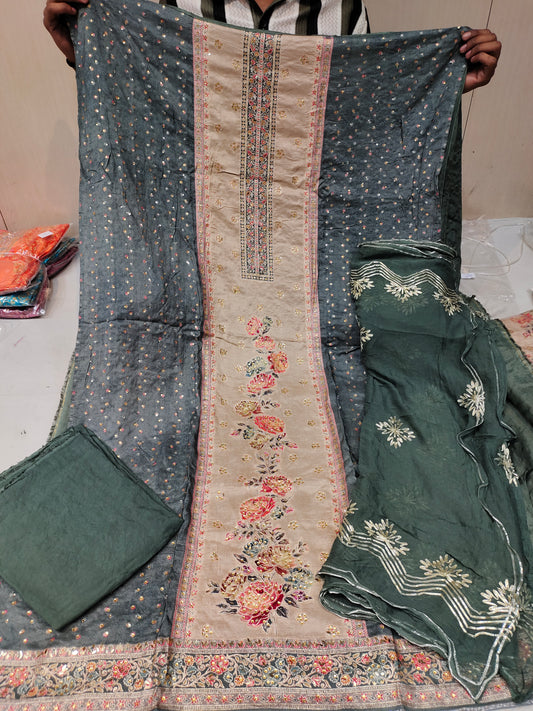 Embellished golden maroon pink Navy blue unstitched salwar suit dress material (free size)