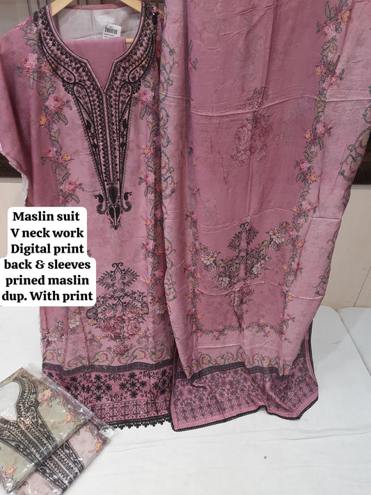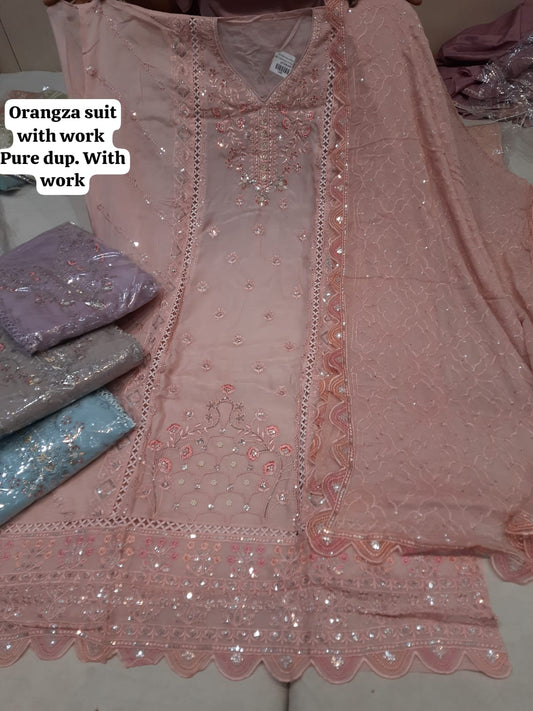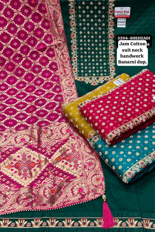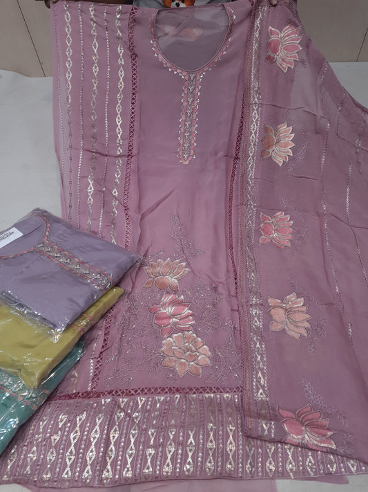 Amazing pink green blue unstitched salwar suit dress material (free size)