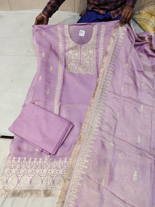 Astonishing white pink green yellow purple unstitched salwar suit dress material (free size)