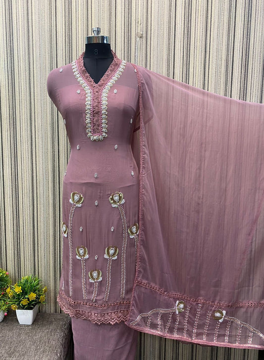 Amazing chiffon sky blue Fancy Salwar suit (free size)