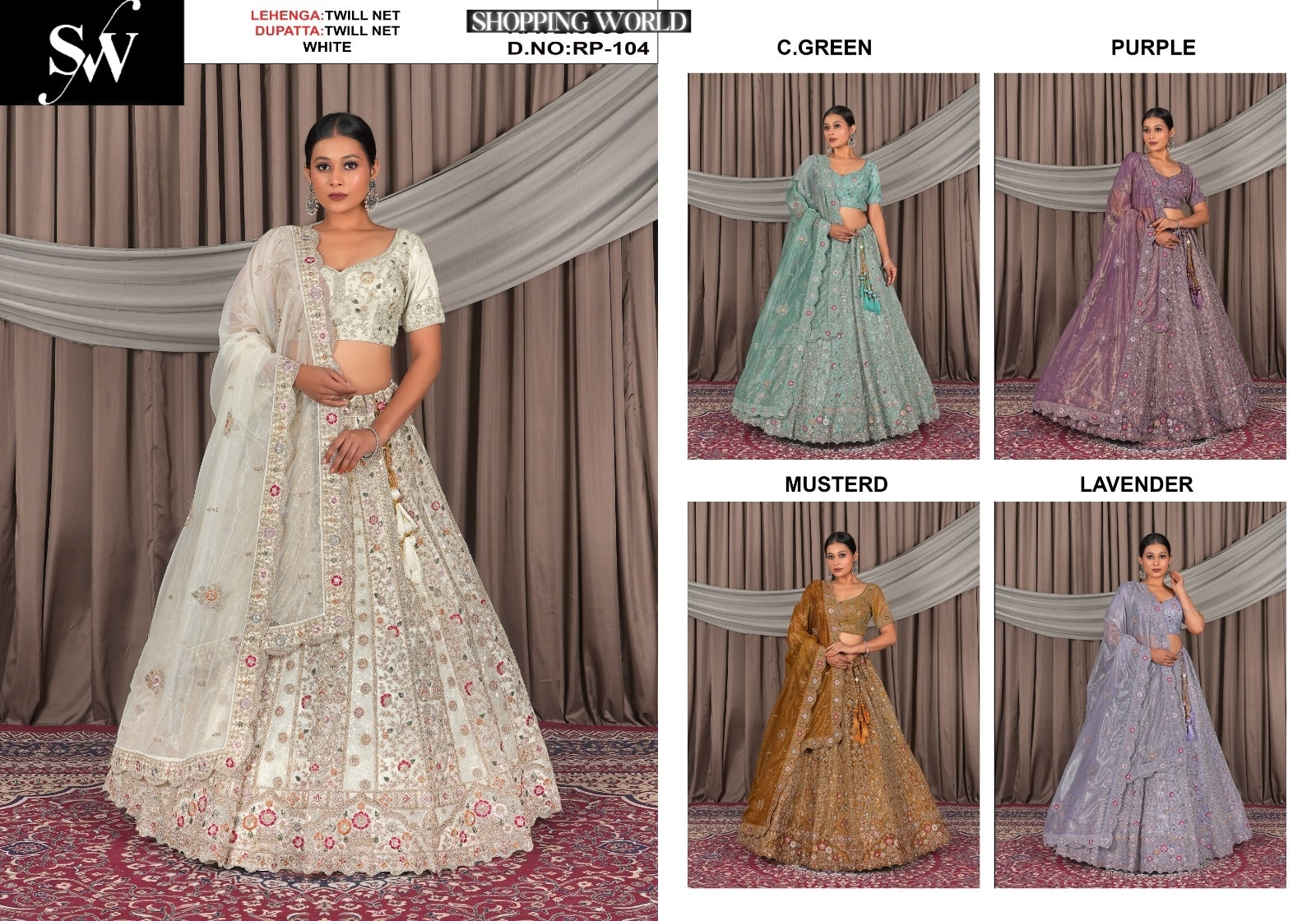 Attractive Twill Net Fabric White Sea green mustard purple Lavender Lehenga