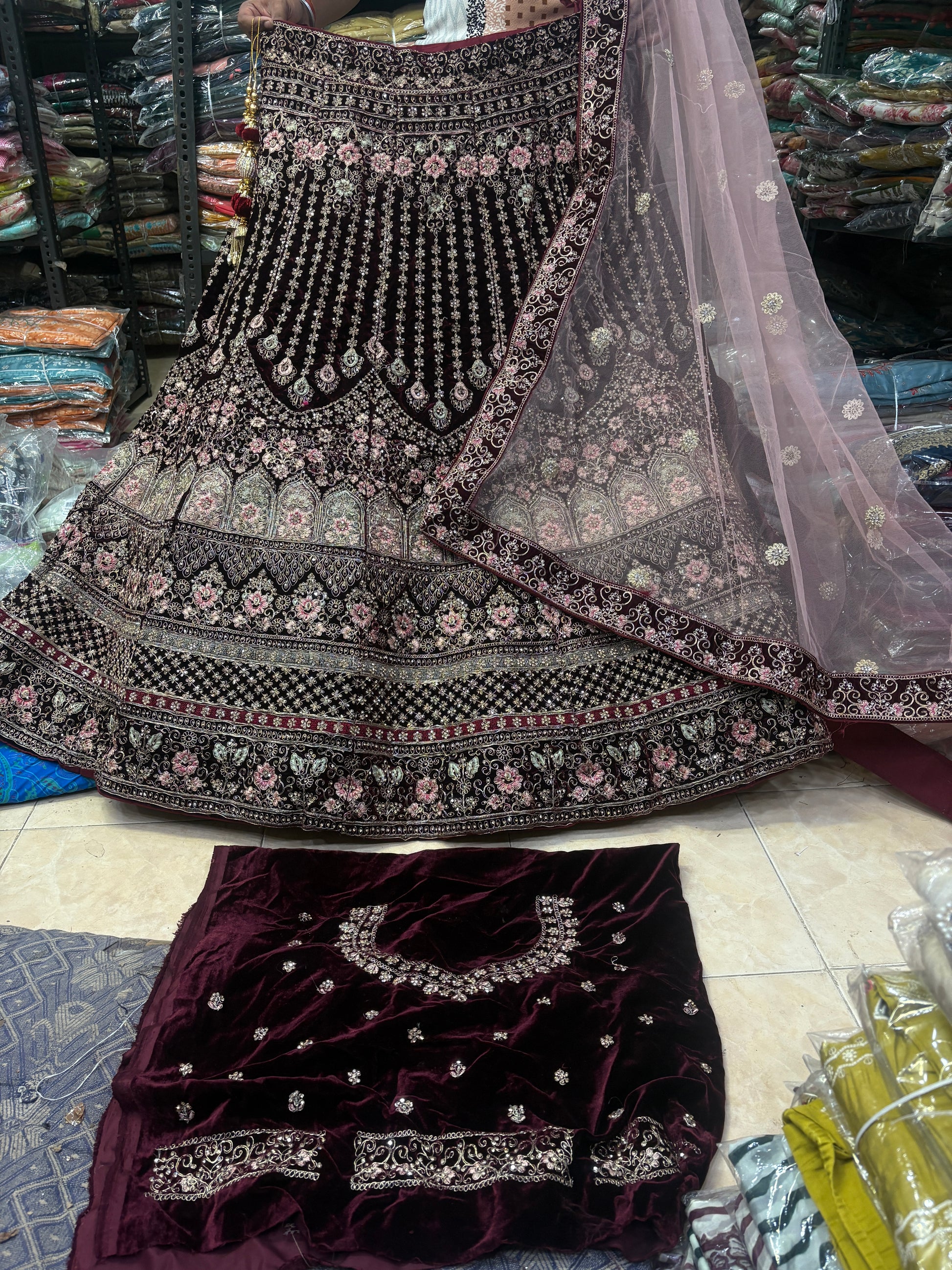 Designer jhumka Maroon bridal lehenga ( happy customer)