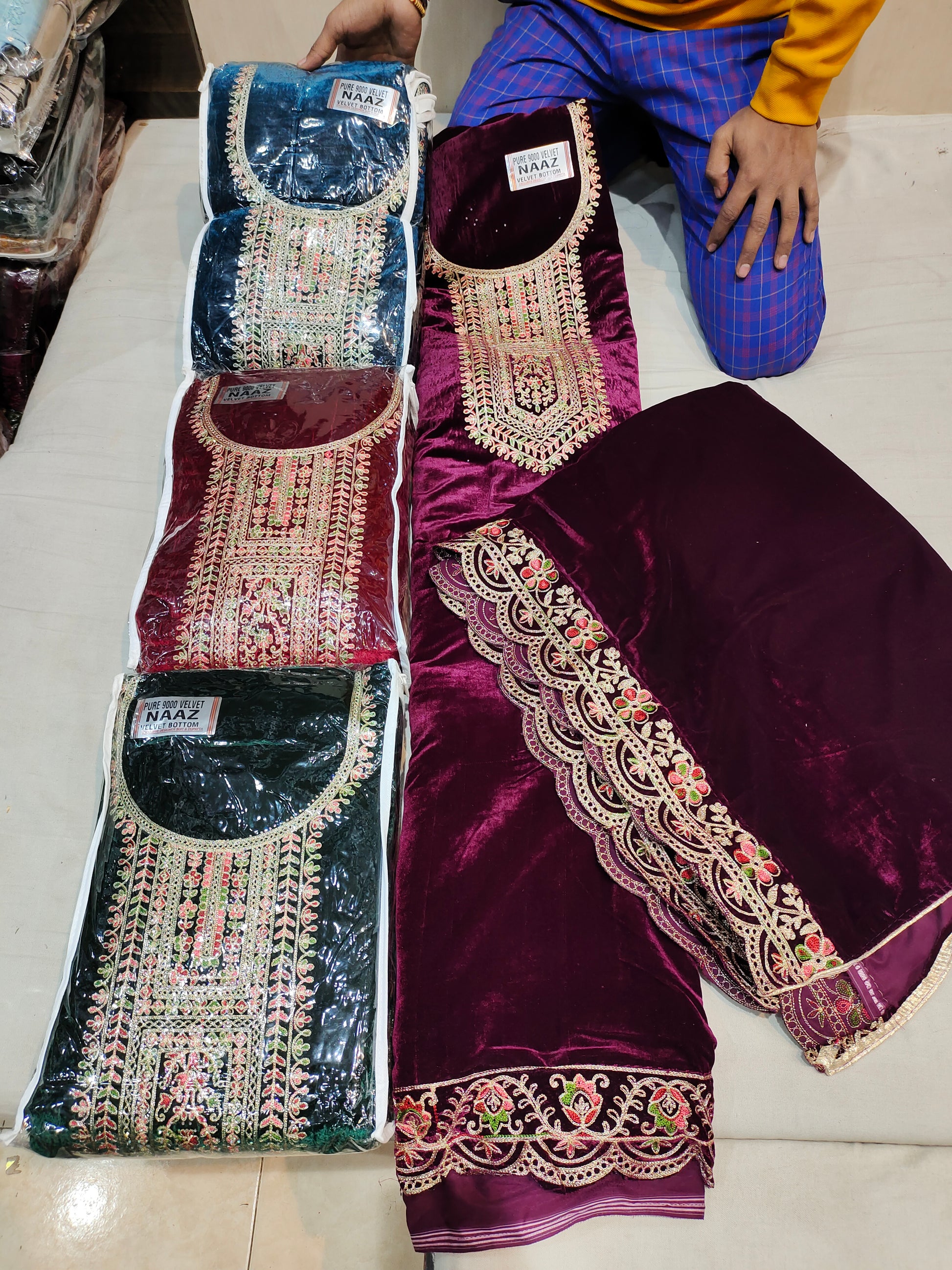 Charming maroon velvet unstitched salwar suit dress material(free size)