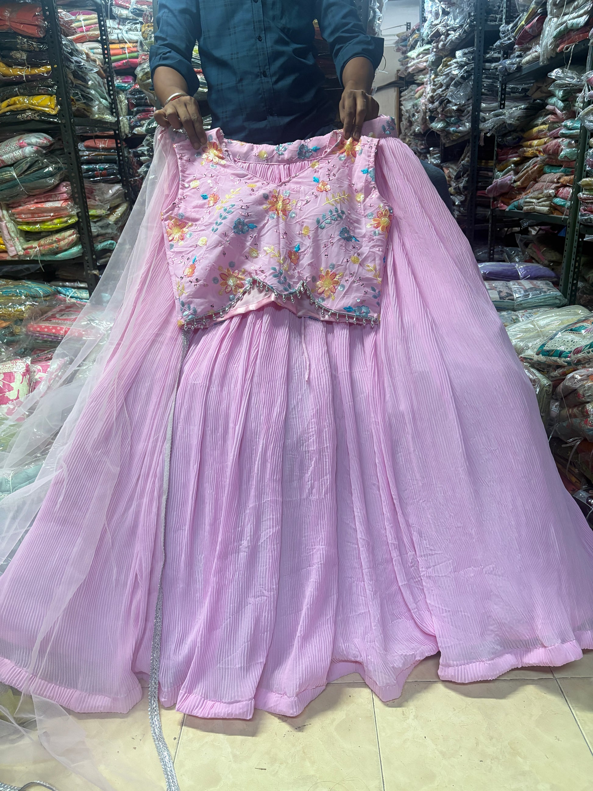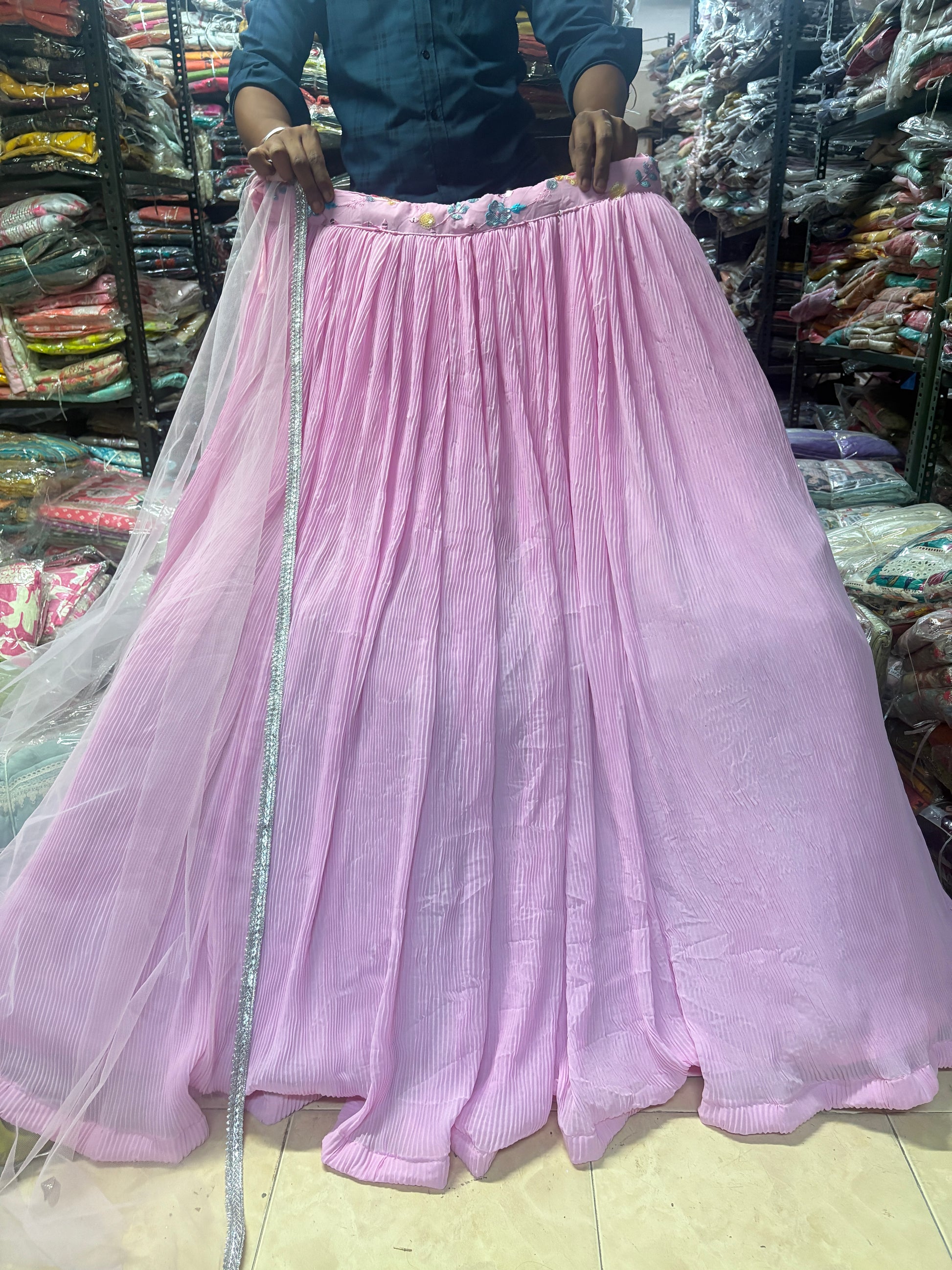 Discover elegance with our Designer Lehenga Collection, perfect for any occasion. These free-size lehengas are thoughtfully designed to accommodate all body types and can be customized to suit your unique style. Crafted to elevate your wardrobe, each lehenga set includes a semi-stitched skirt, unstitched blouse fabric (choli), and a matching chunni (dupatta), making it an ideal choice for weddings, festivals, and special celebrations.