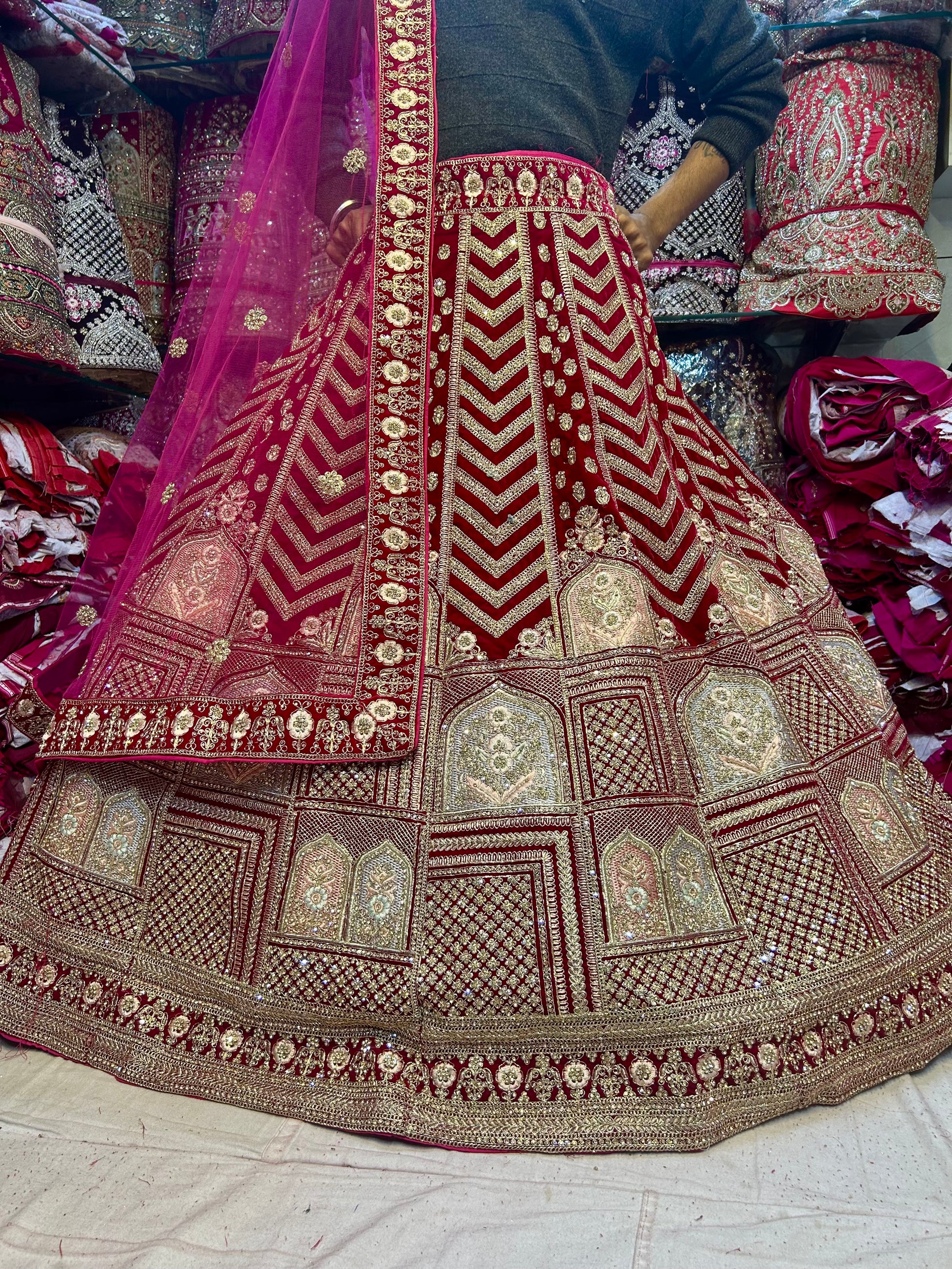 Royal Red Bridal Lehenga Double tail Dupatta with Dupatta happy customer