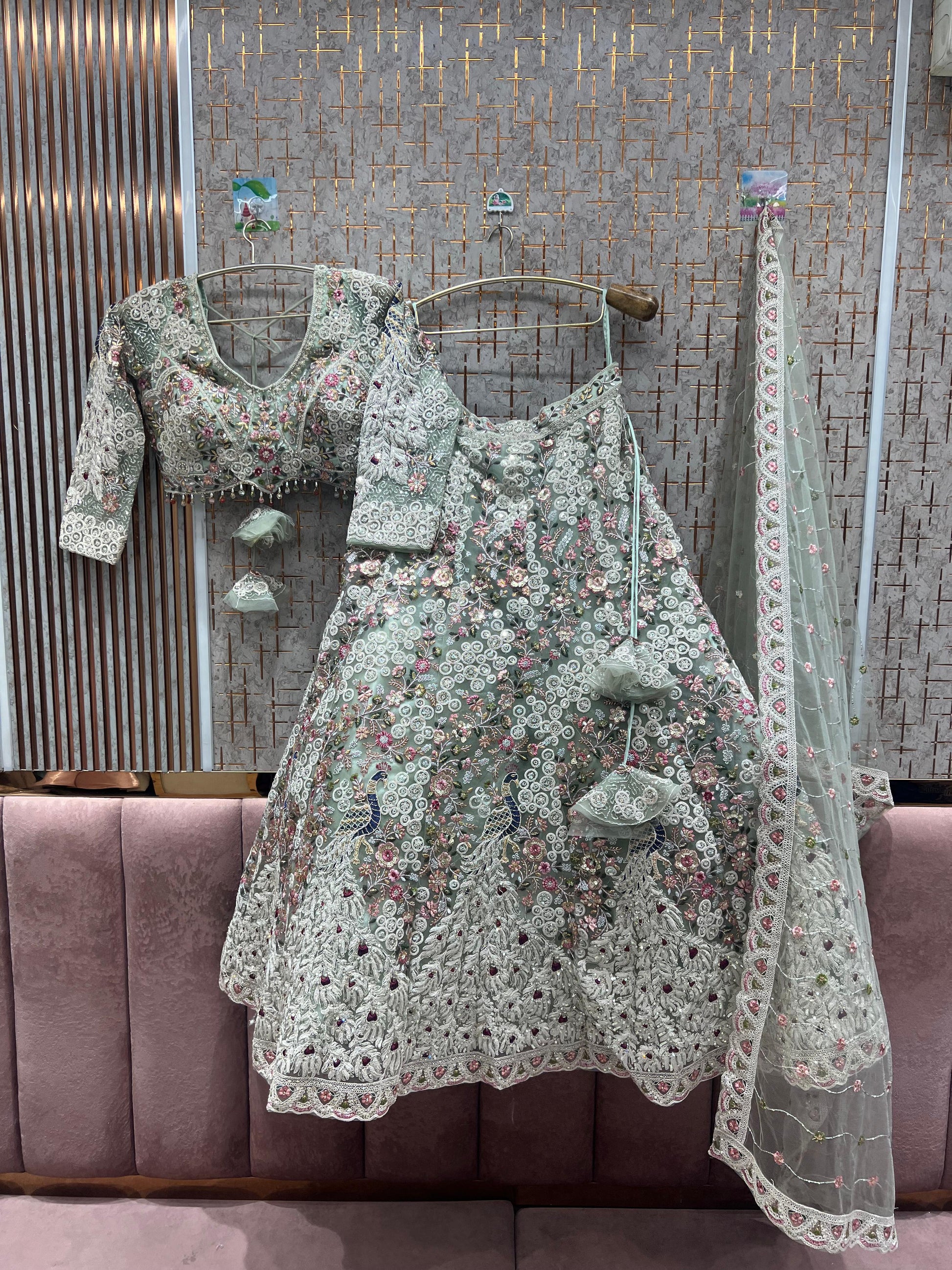 Attractive pista green peacock crop top Lehenga Happy Customer
