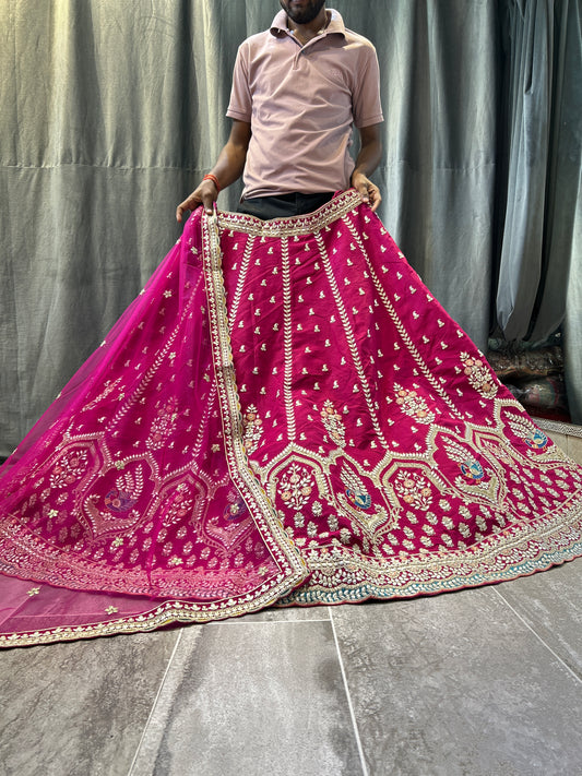 Top corto Lehenga listo para usar con pavo real rosa intenso y lujoso