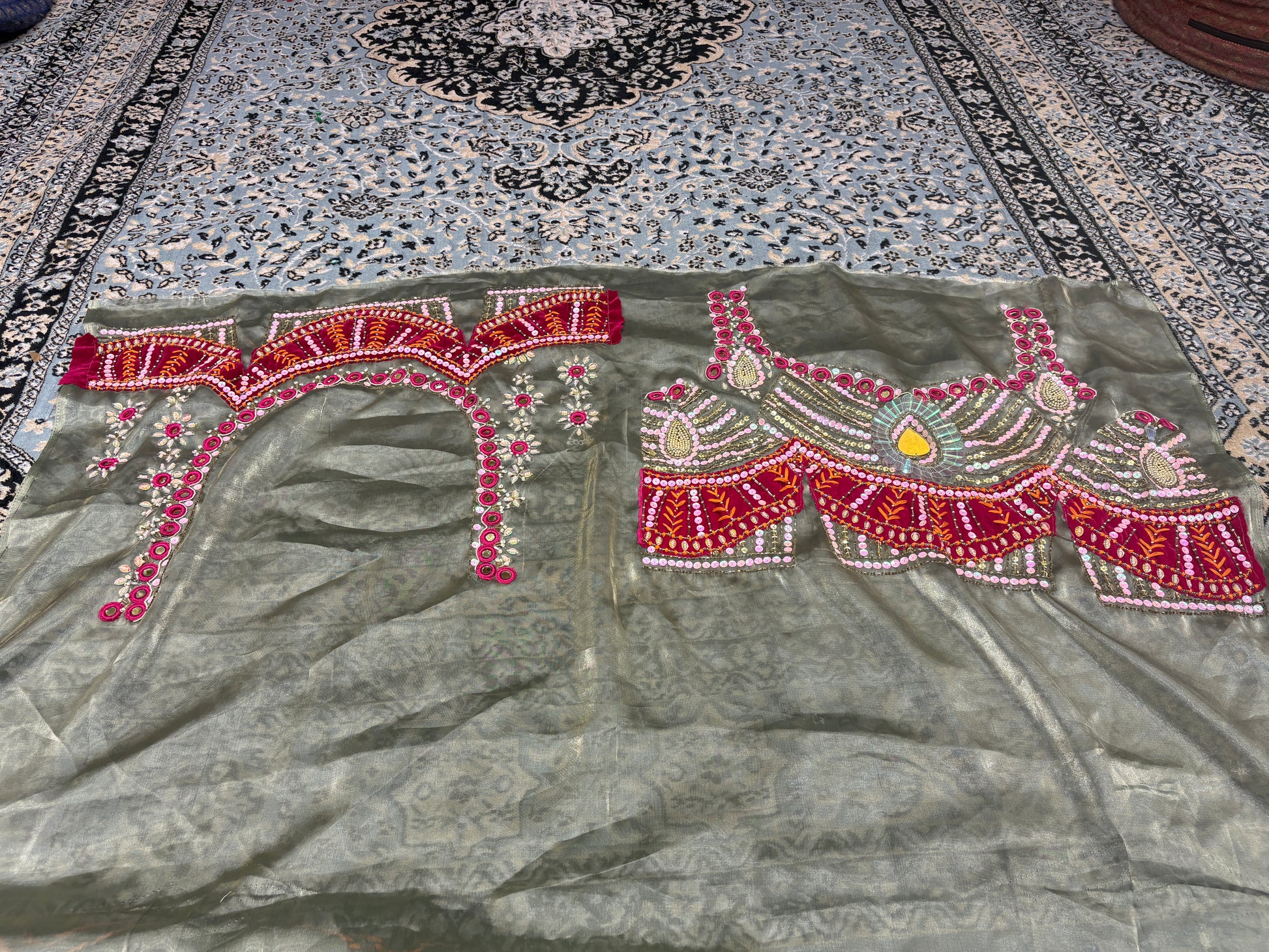 Ofrecemos saris sin coser y saris pre-cosidos (listos para usar) para su comodidad.