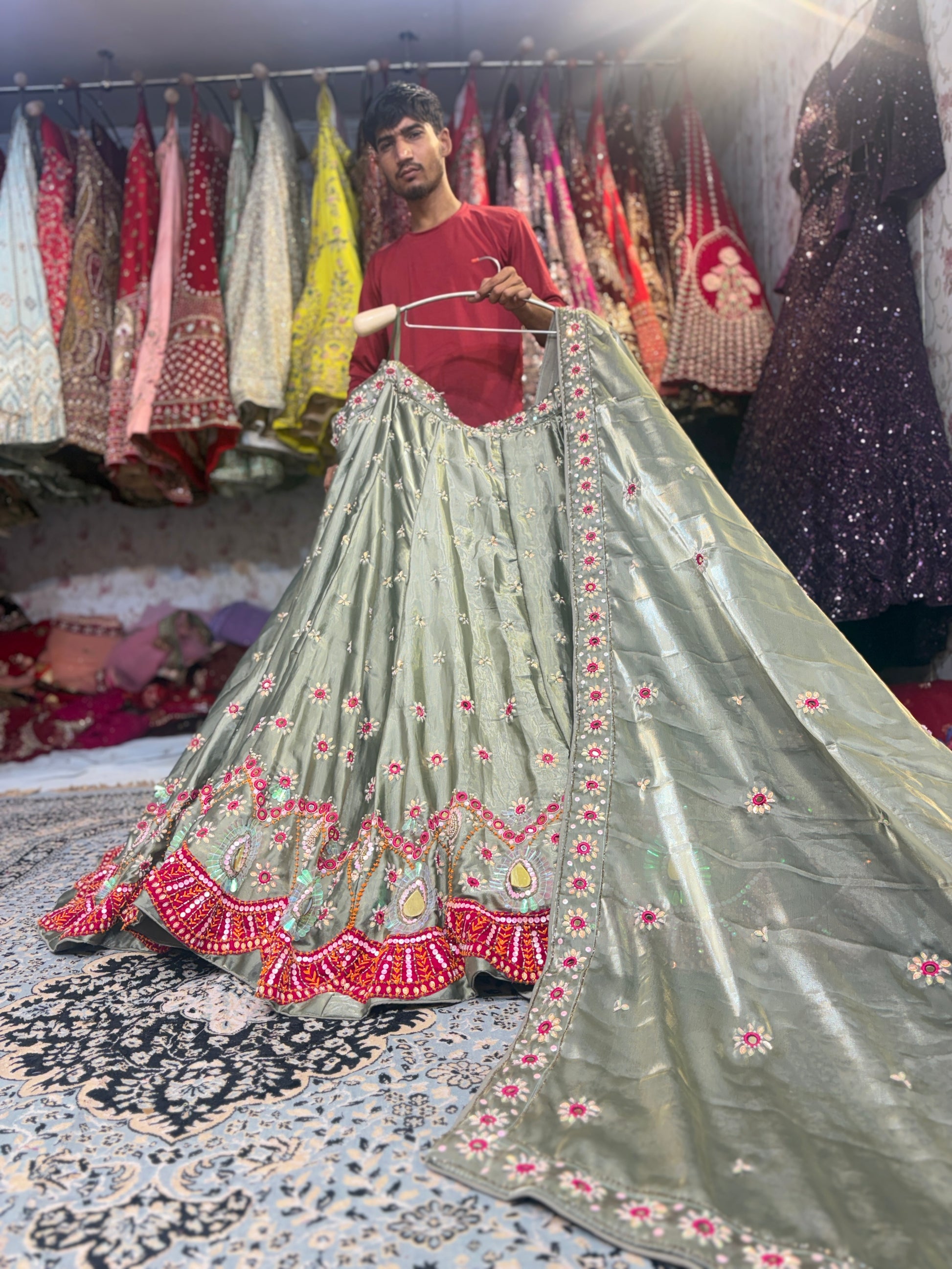 Attractive pista green peacock crop top Lehenga Happy Customer