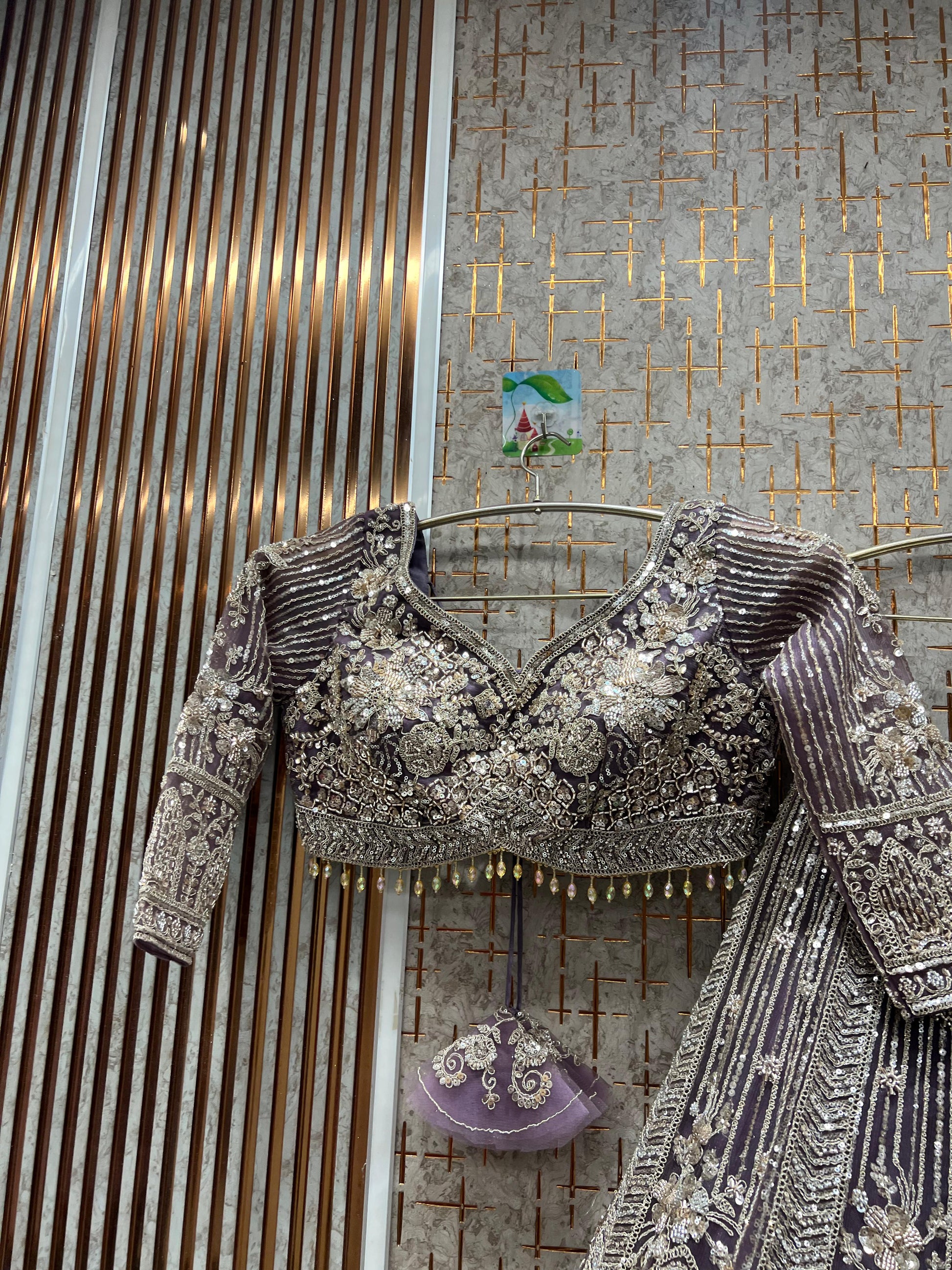 Encantadora lehenga nupcial pesada de color rosa oscuro (cliente satisfecha)