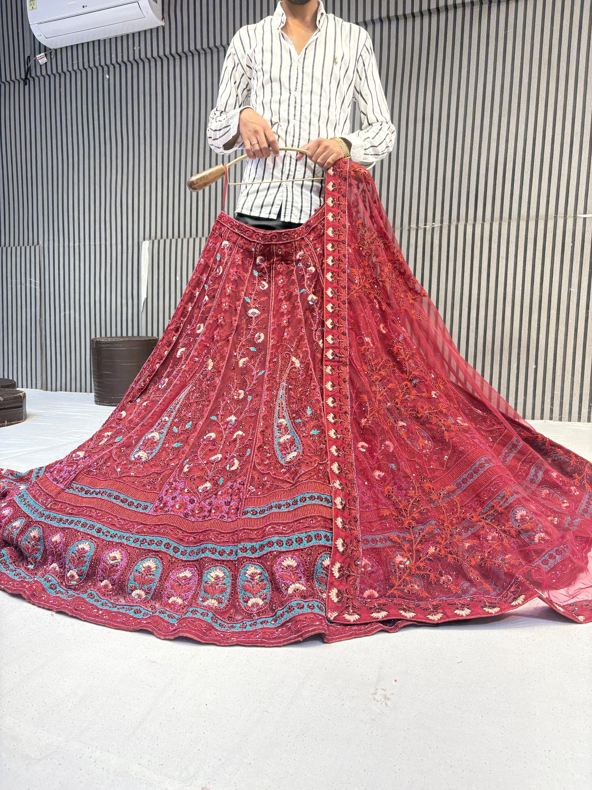 Encantadora lehenga nupcial pesada de color rosa oscuro (cliente satisfecha)