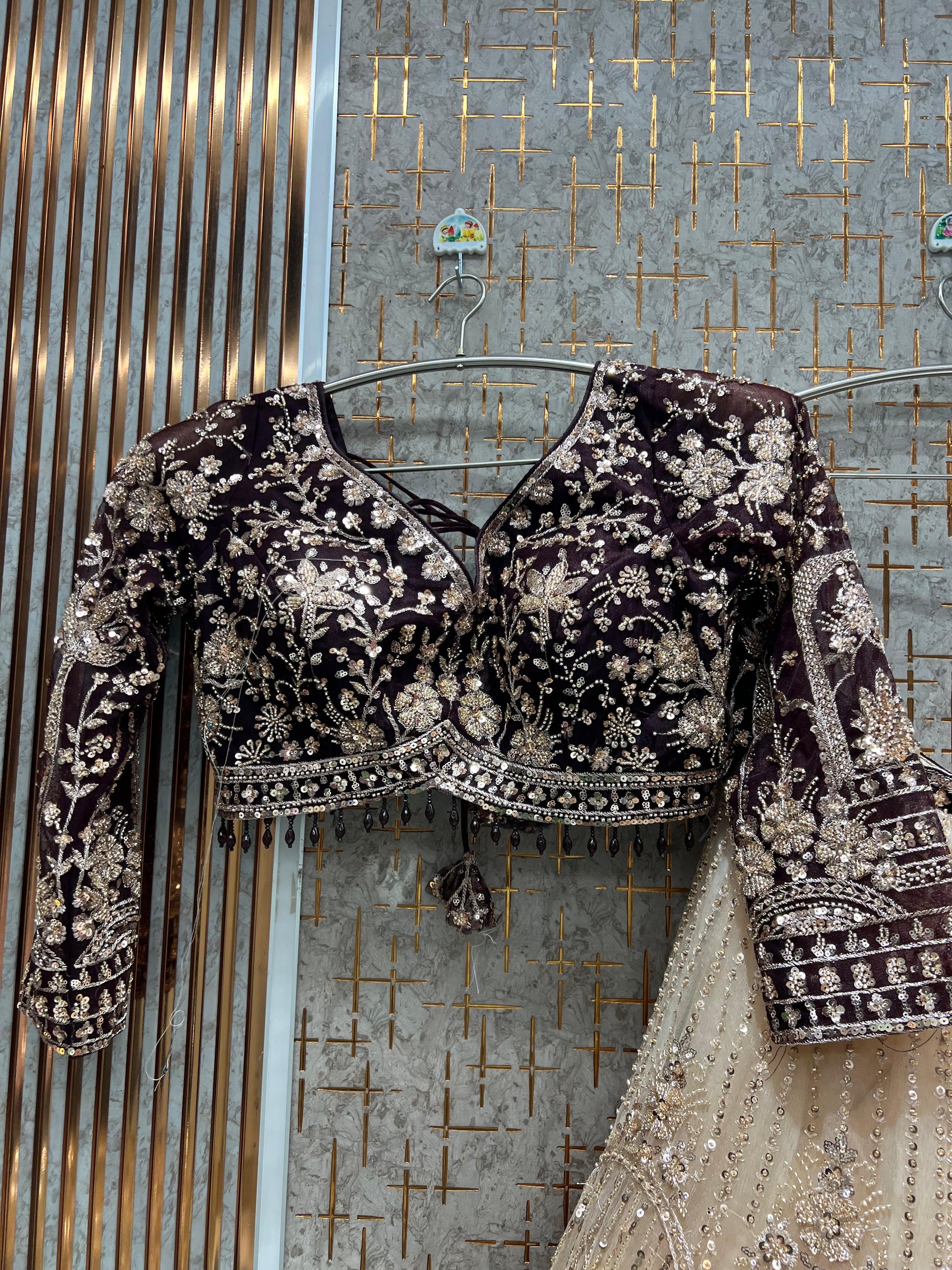 Impresionante top corto beige melocotón Lehenga Cliente satisfecho