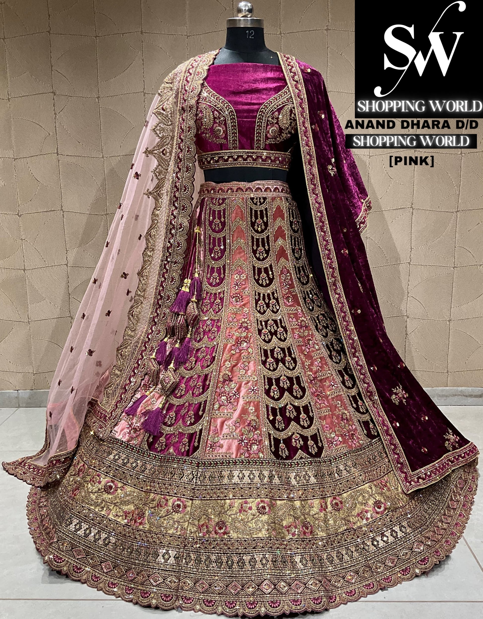 Encantadora lehenga nupcial pesada de color rosa oscuro (cliente satisfecha)