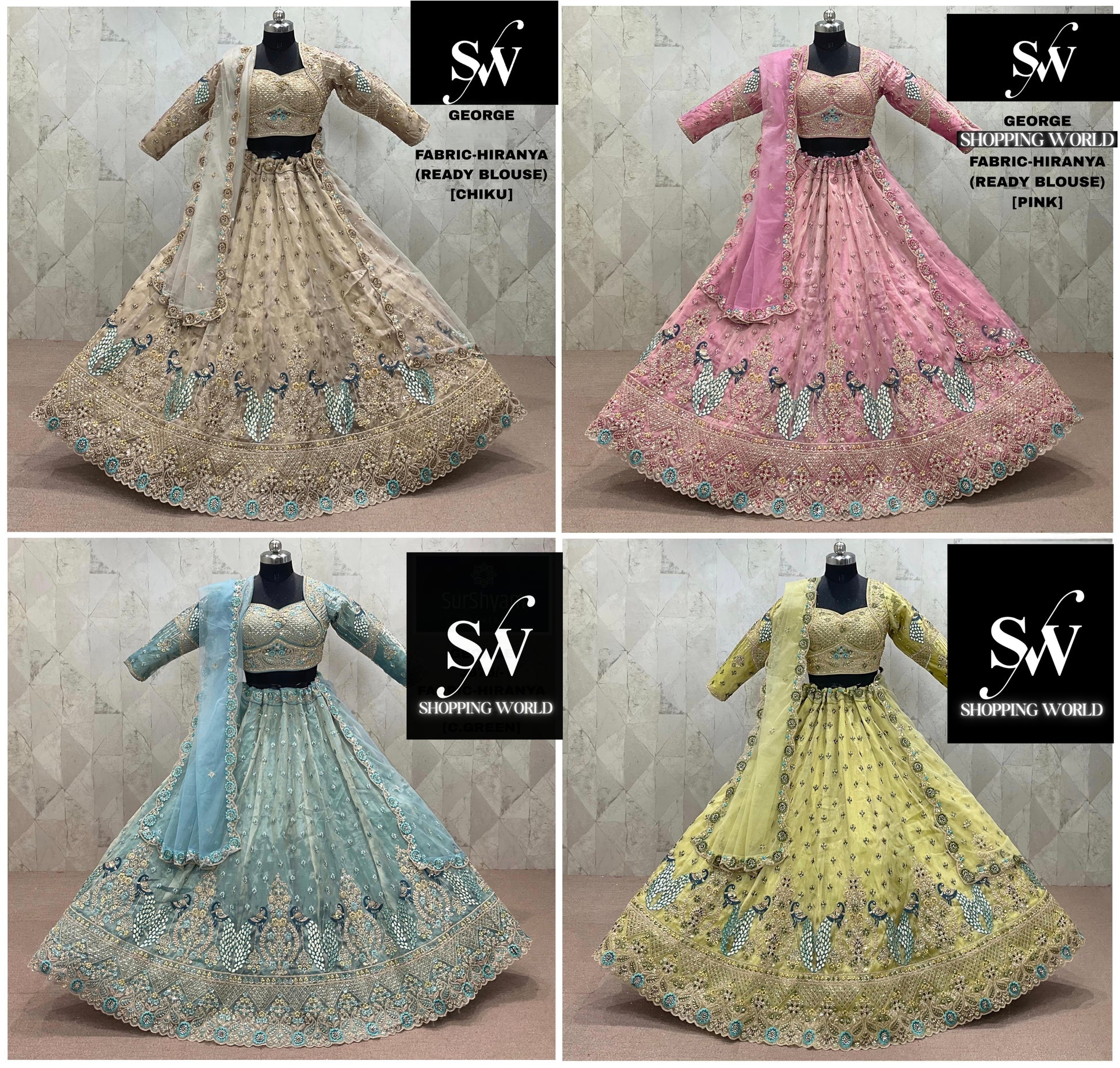 Delightful Chiku golden Pink Sky blue Pista green peacock Ready to wear Crop Top Lehenga