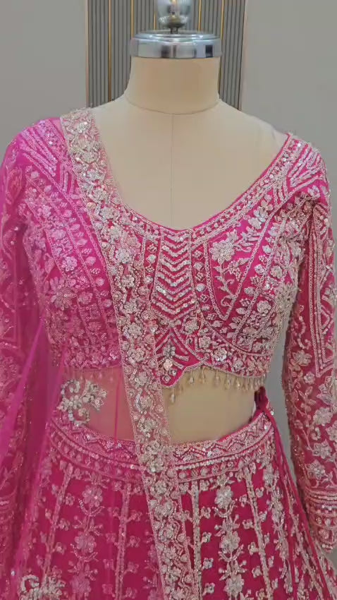 Encantadora lehenga nupcial pesada de color rosa oscuro (cliente satisfecha)