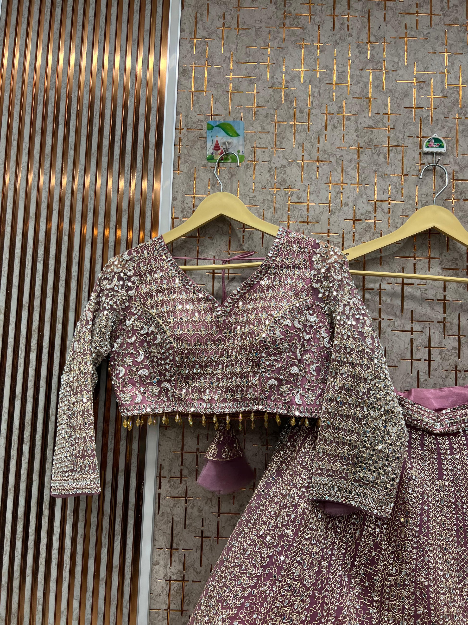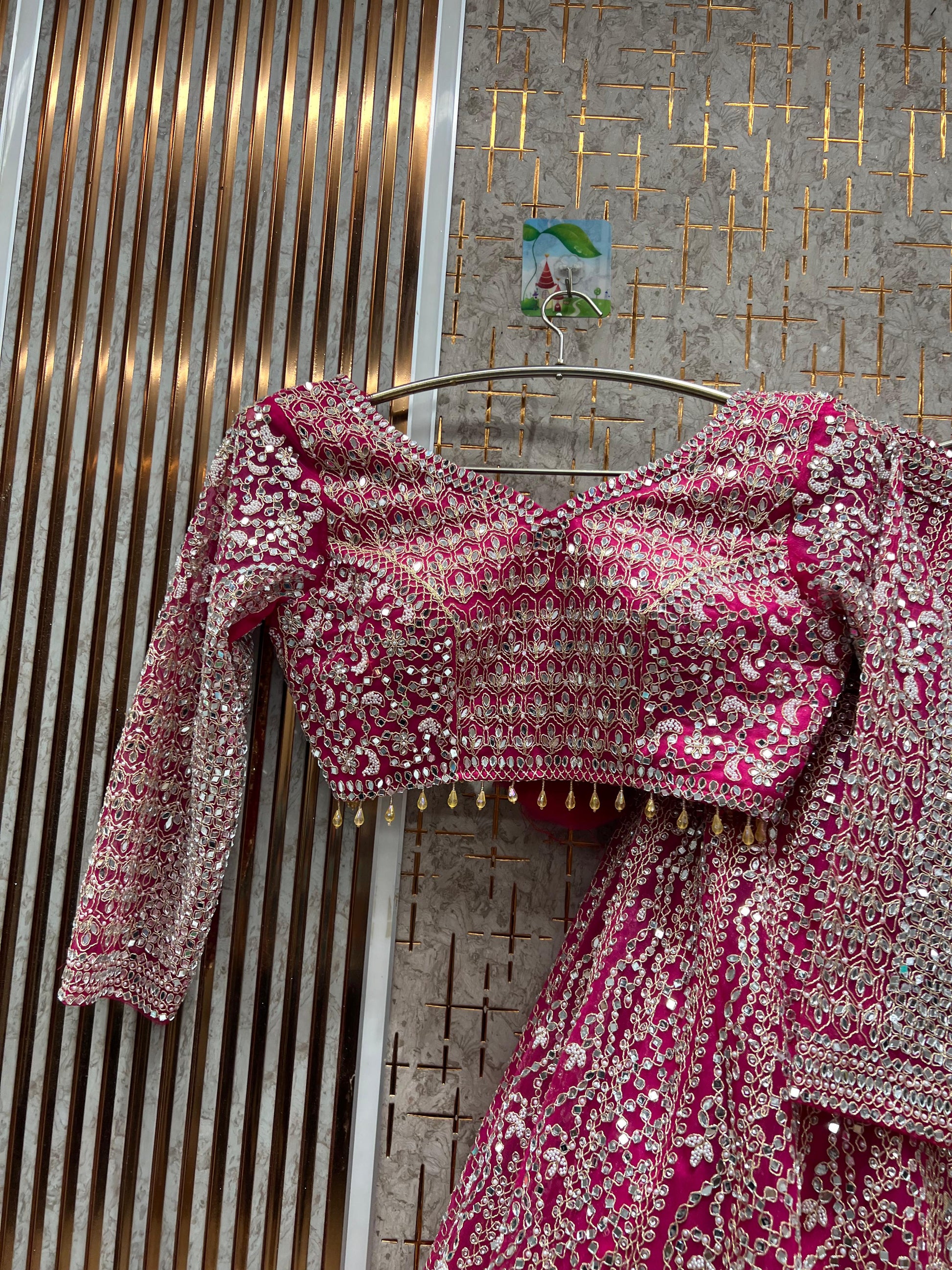 Encantadora lehenga nupcial pesada de color rosa oscuro (cliente satisfecha)