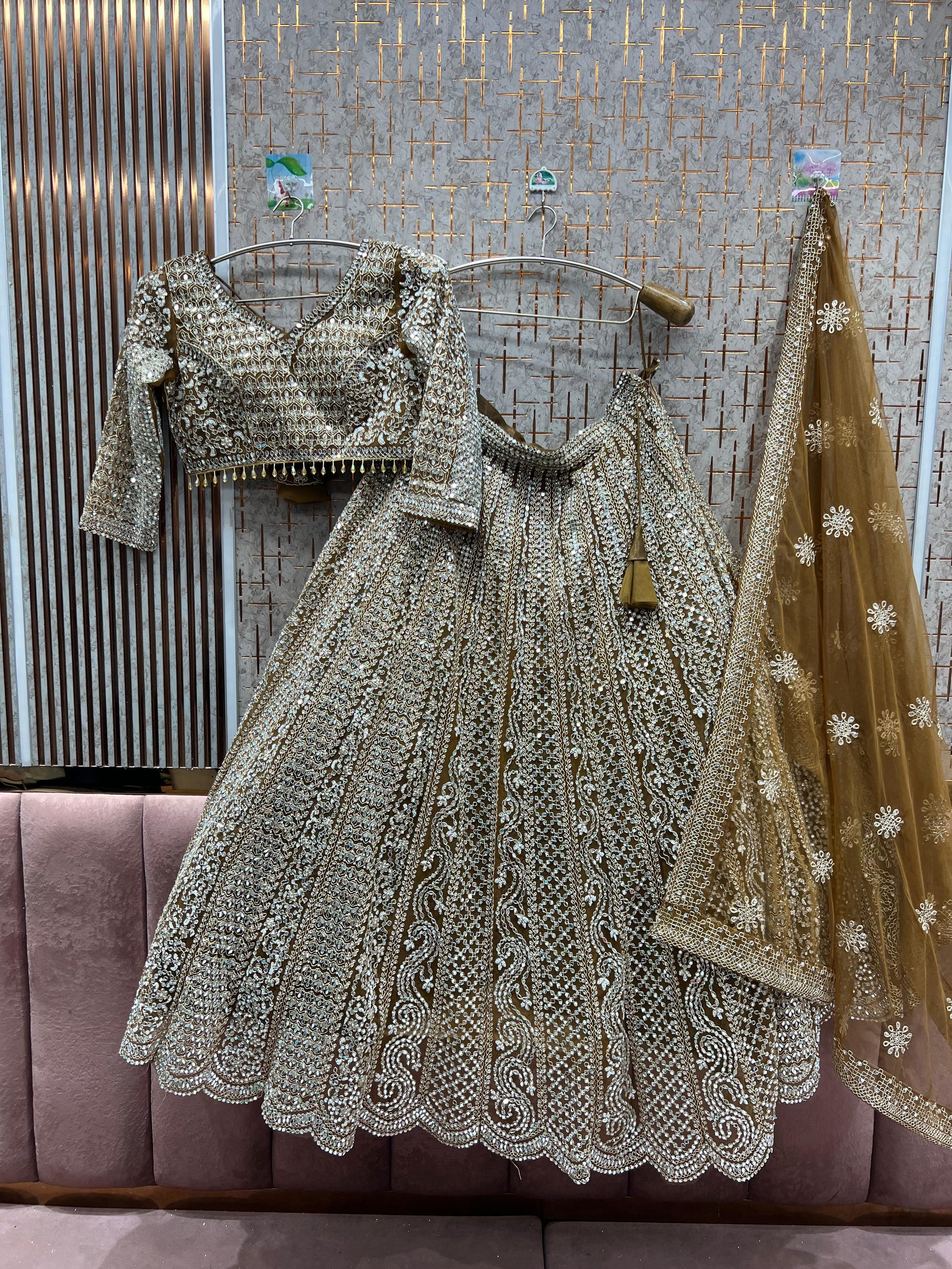 From the USA, this golden lehenga was the highlight of my wedding. The royal look and detailed embroidery made me feel like a true bride.