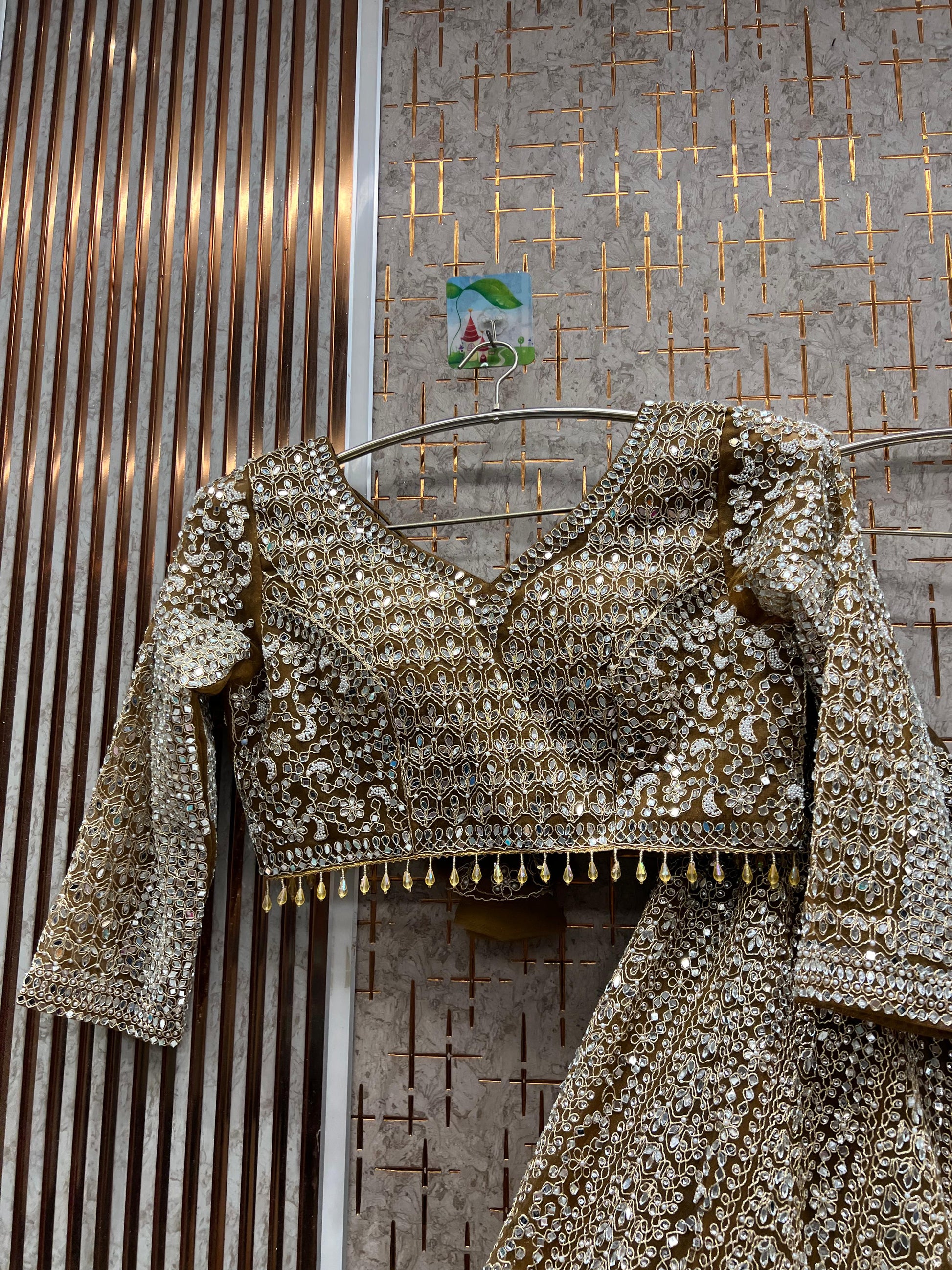 Elegante lehenga de novia color mostaza (cliente satisfecha)