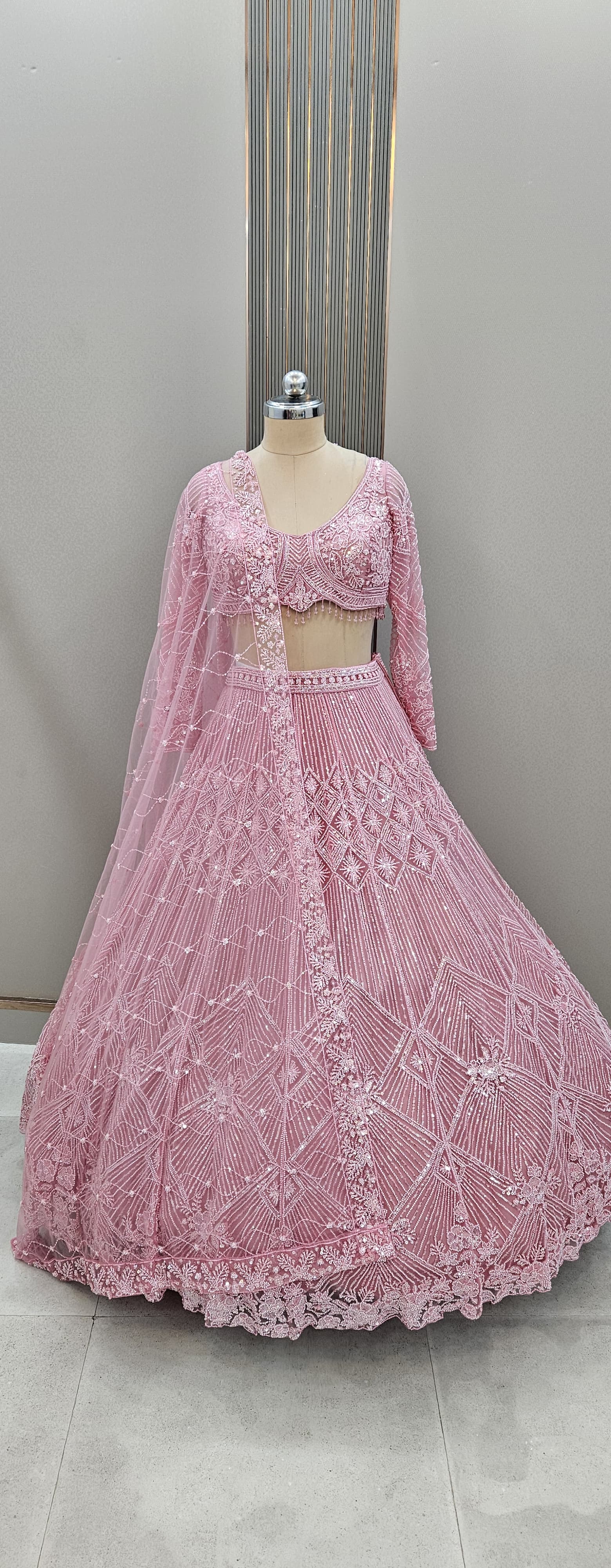 Encantadora lehenga nupcial pesada de color rosa oscuro (cliente satisfecha)