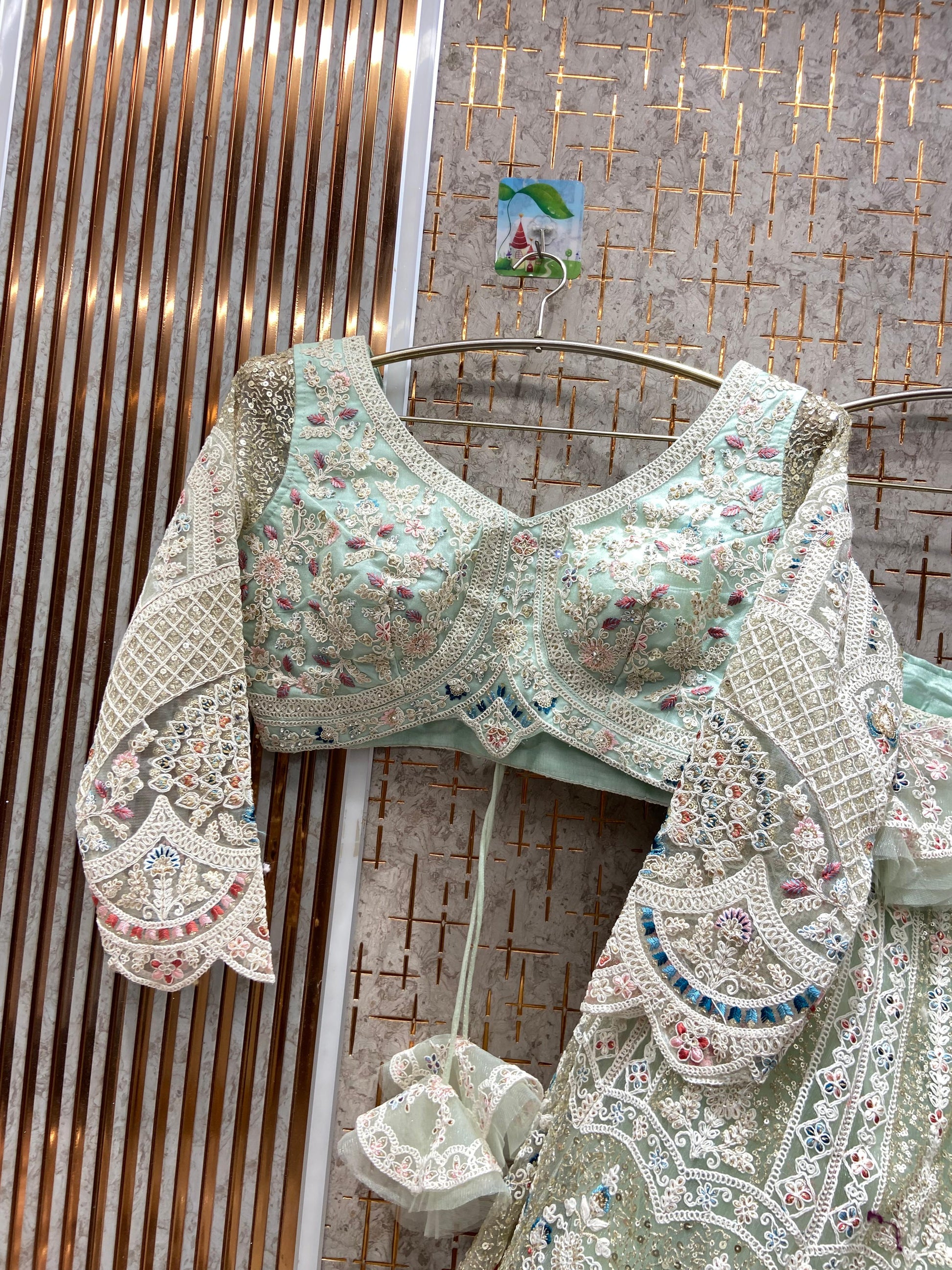 Attractive pista green peacock crop top Lehenga Happy Customer