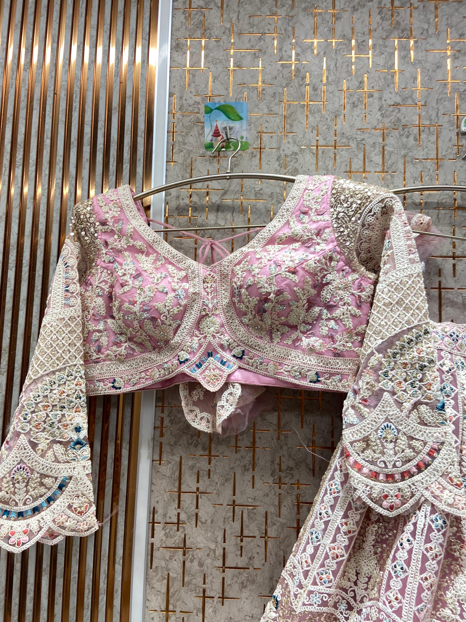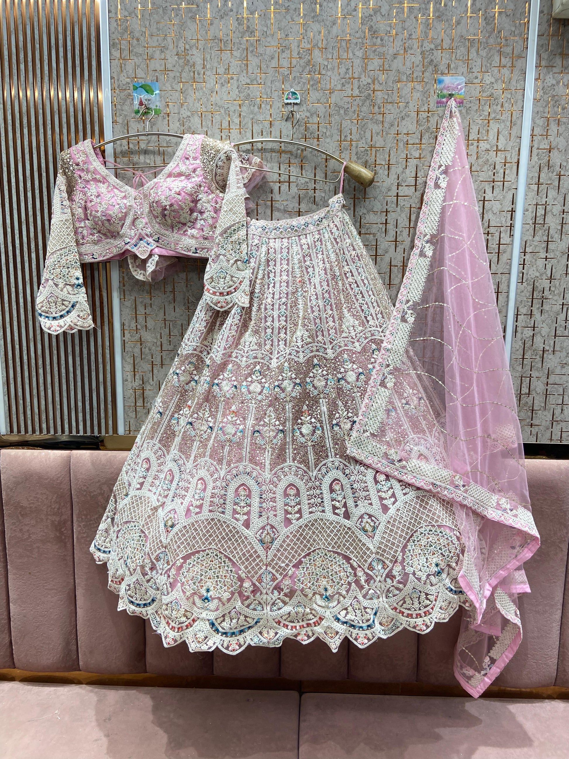 From Dubai, my pastel pink lehenga was dreamy and elegant – loved every detail.