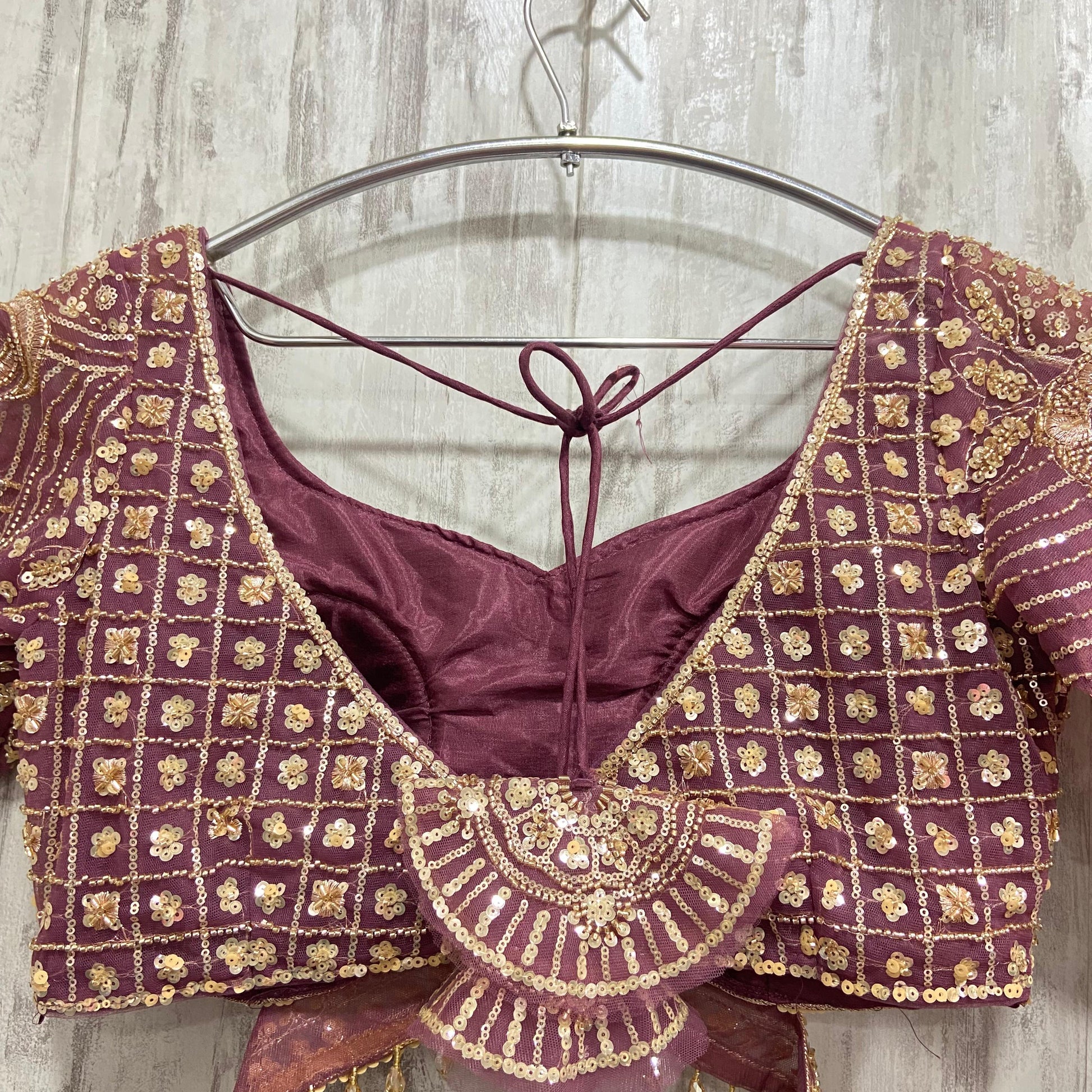 Precioso Lehenga nupcial color granate, clienta satisfecha.
