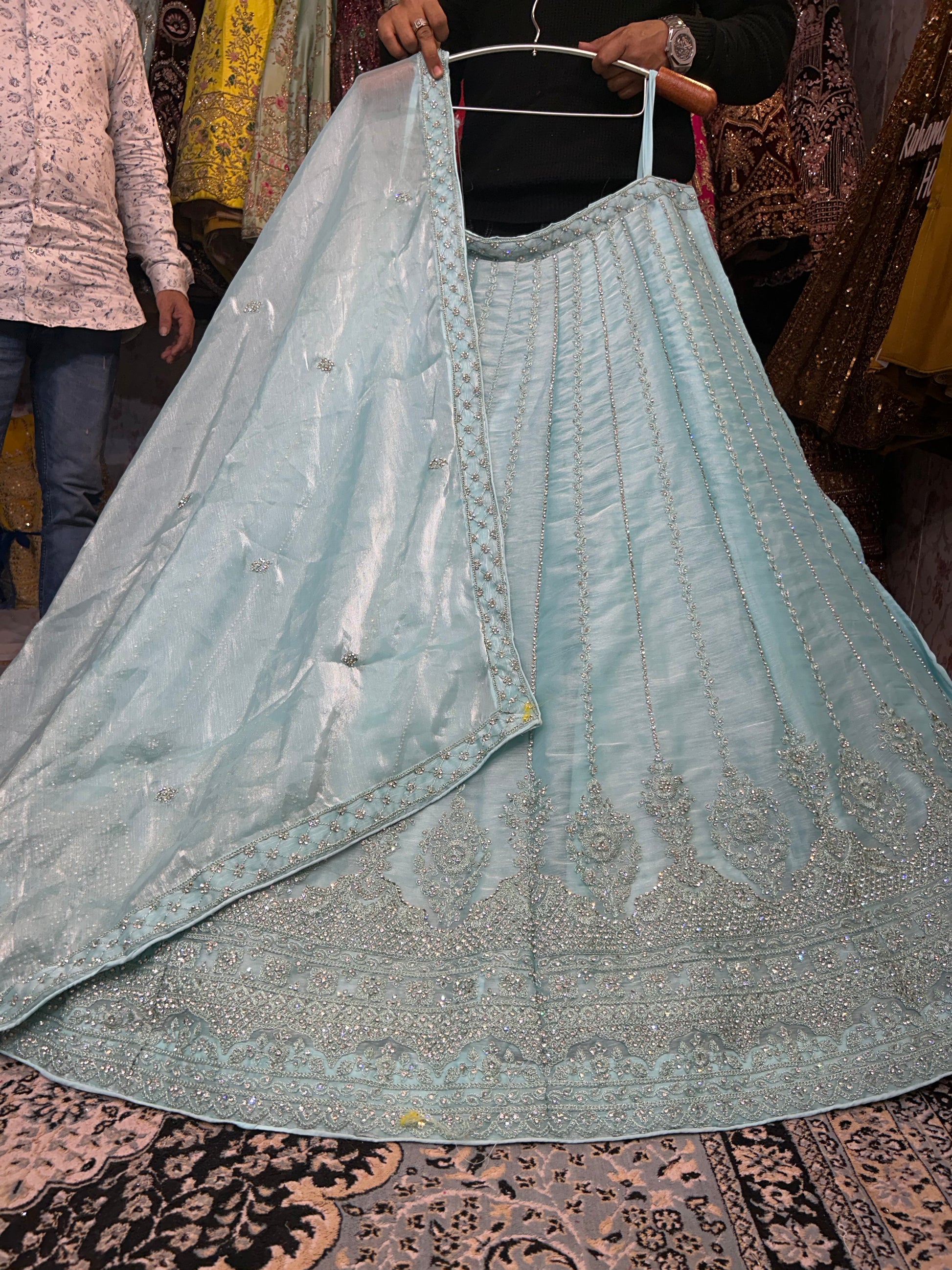 Attractive pista green peacock crop top Lehenga Happy Customer