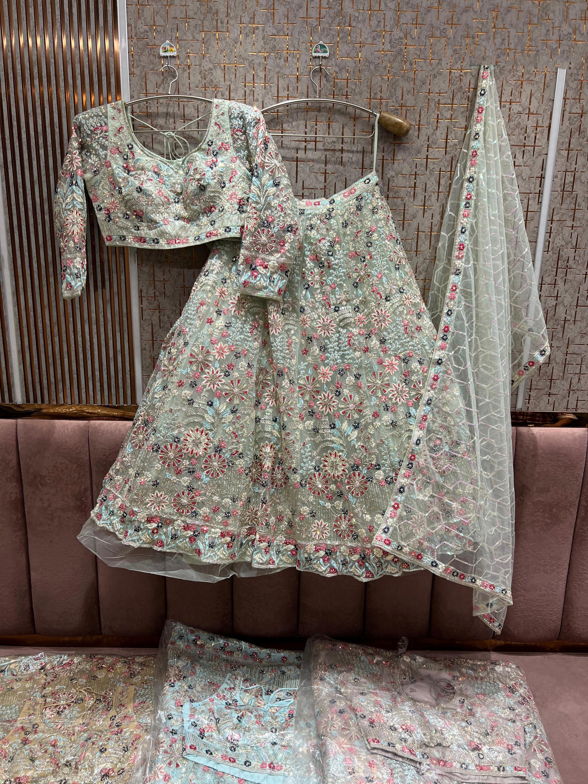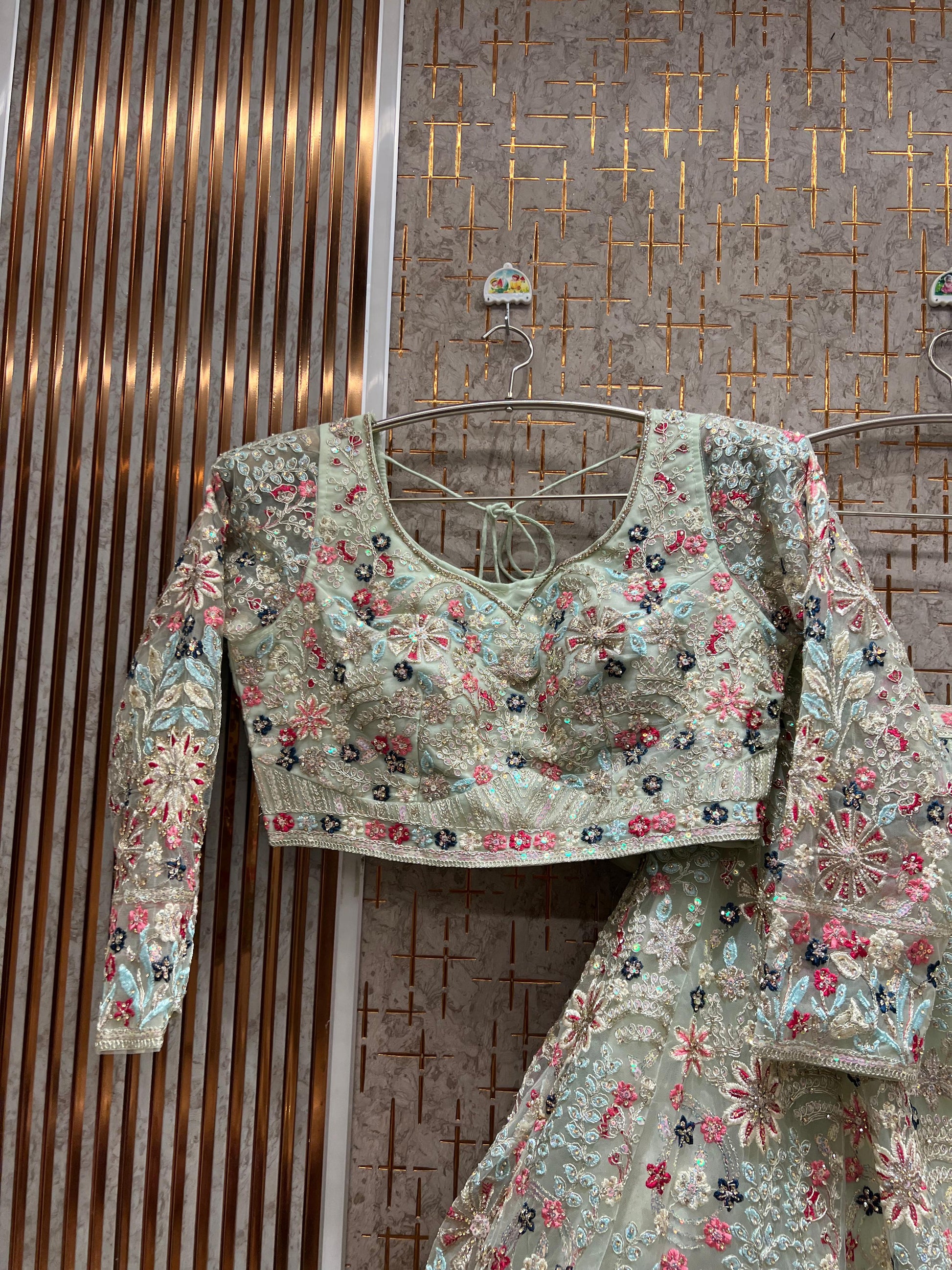 Attractive pista green peacock crop top Lehenga Happy Customer