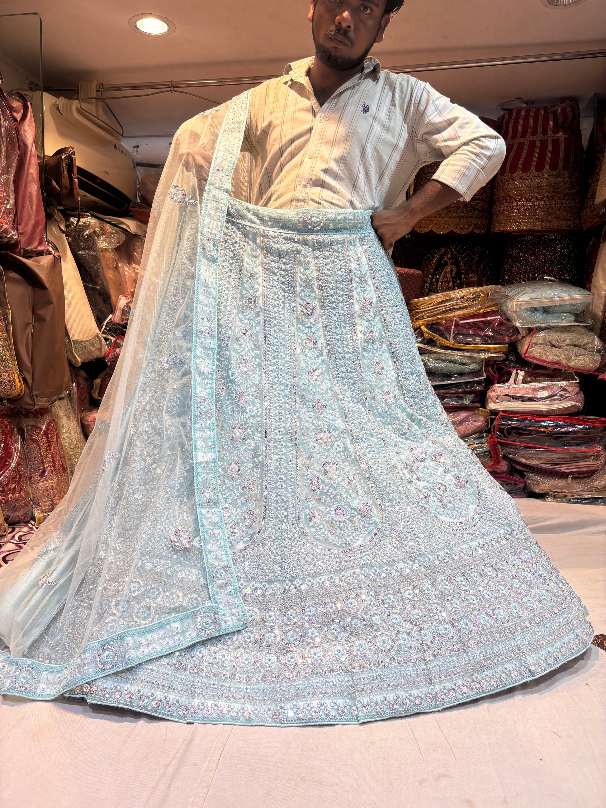 Attractive pista green peacock crop top Lehenga Happy Customer