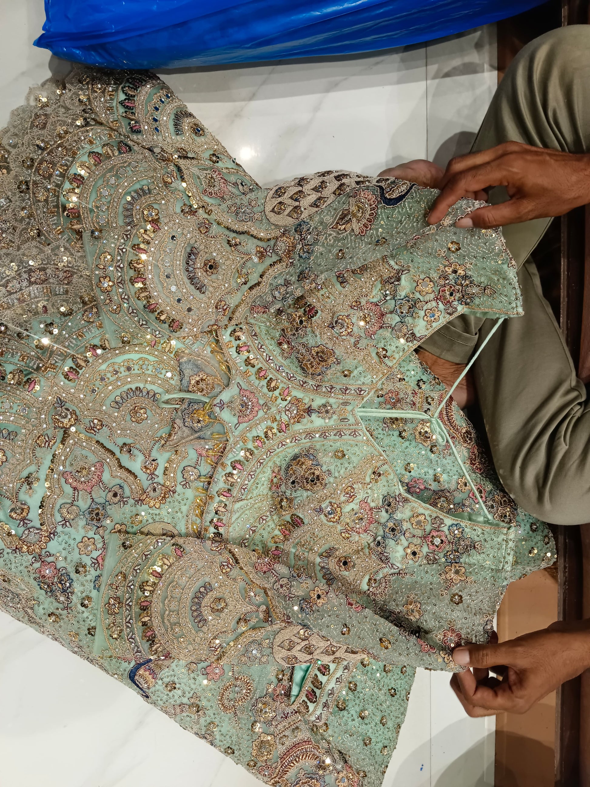 Attractive pista green peacock crop top Lehenga Happy Customer