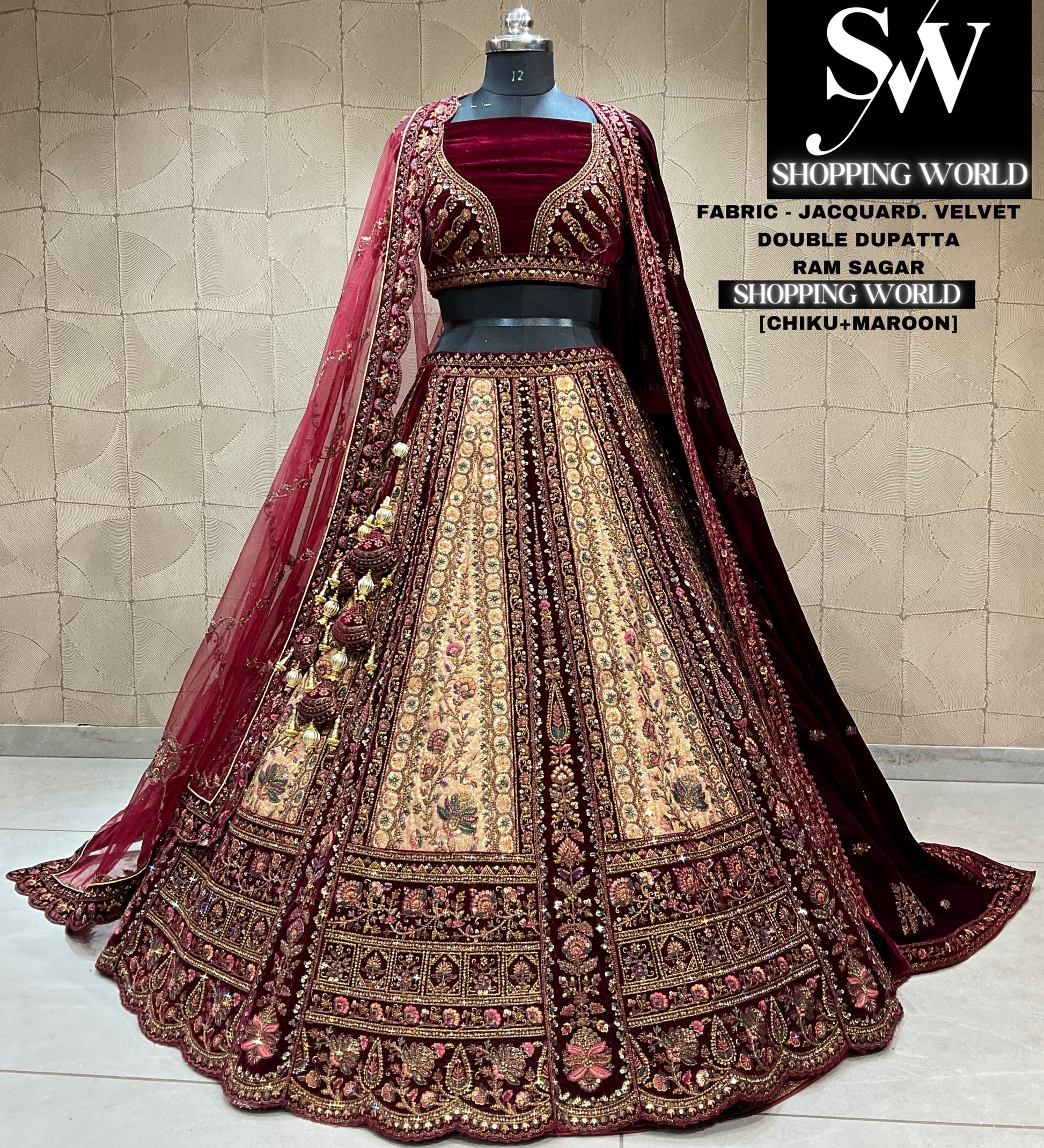 Impresionante lehenga nupcial color granate dorado (cliente feliz)