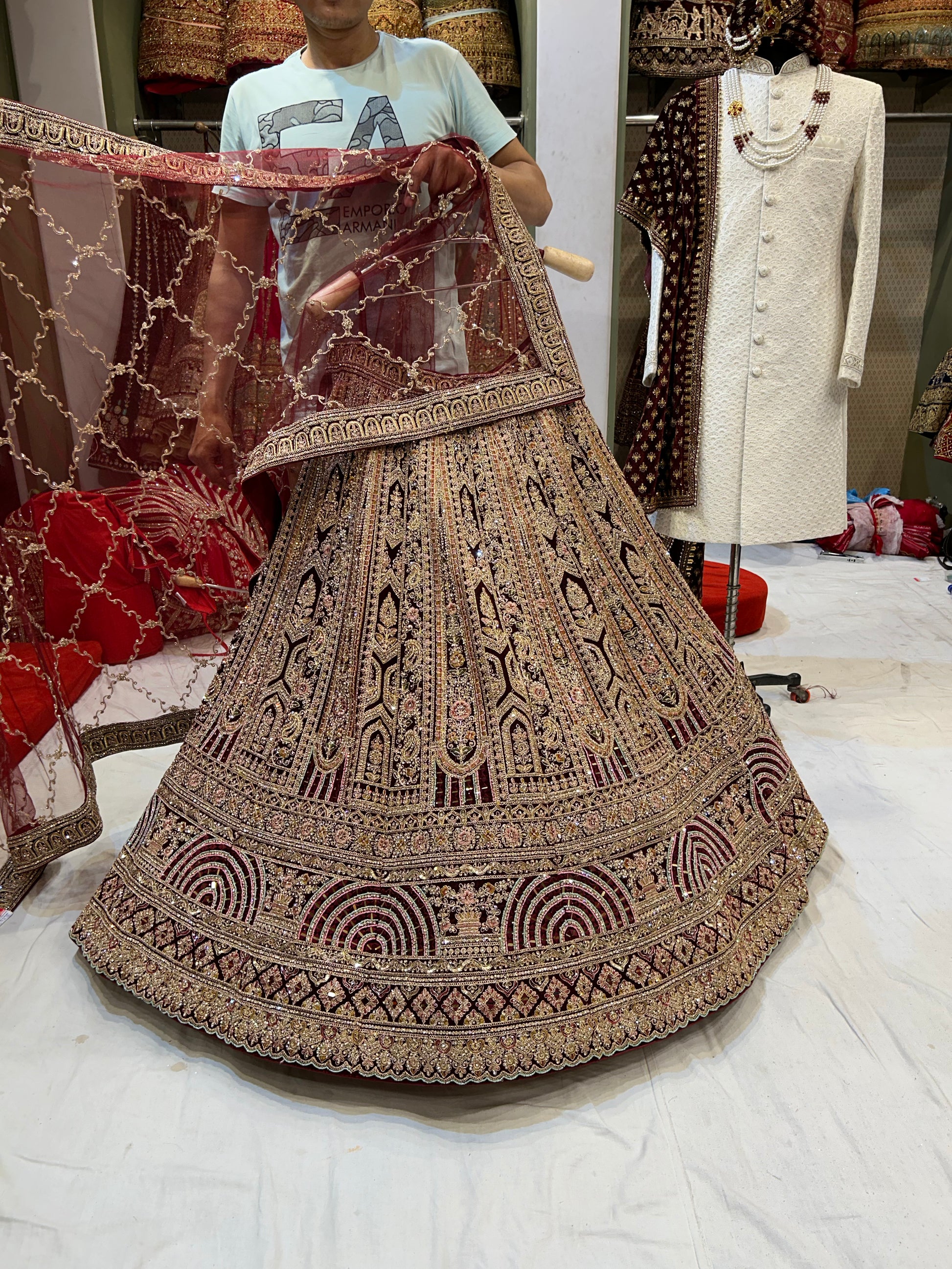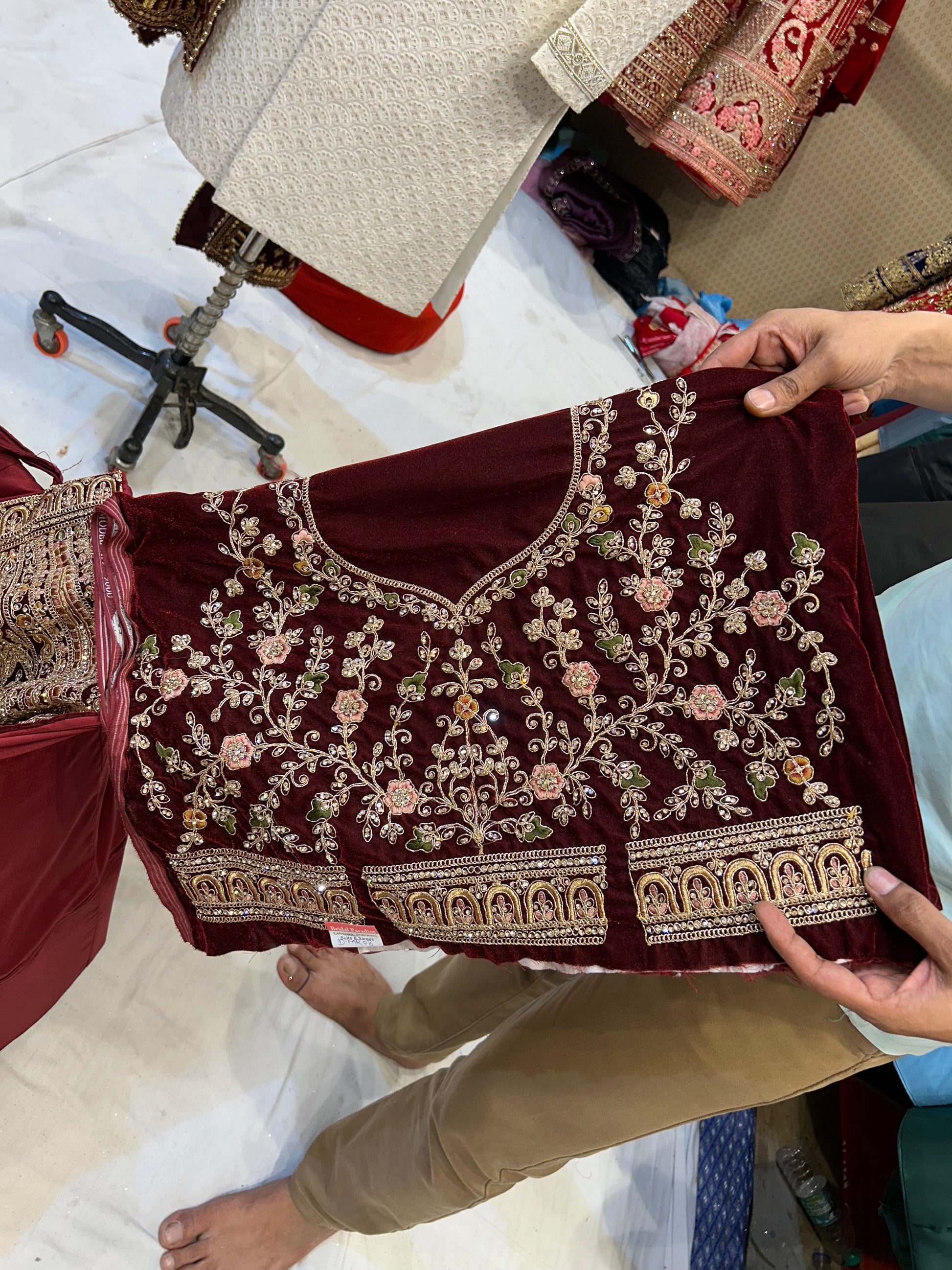 Diseñador jhumka Maroon bridal lehenga (cliente feliz)