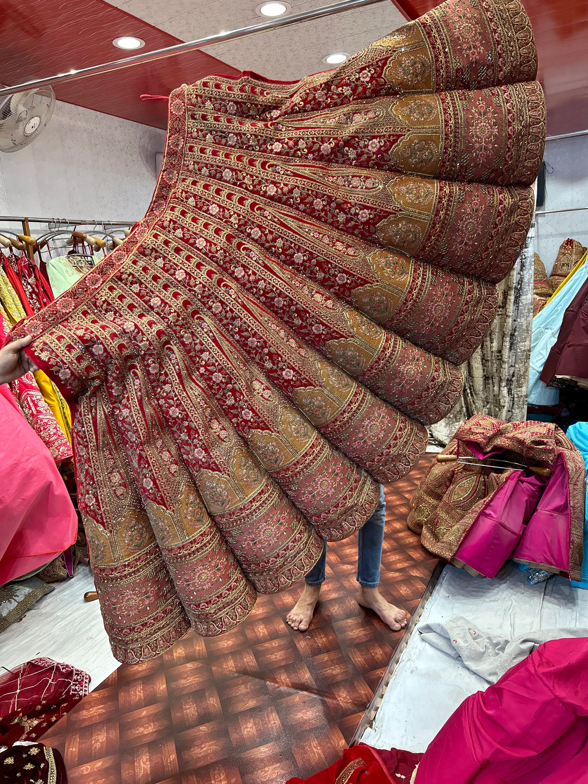 Hermosa lehenga nupcial roja jhumka (cliente feliz)