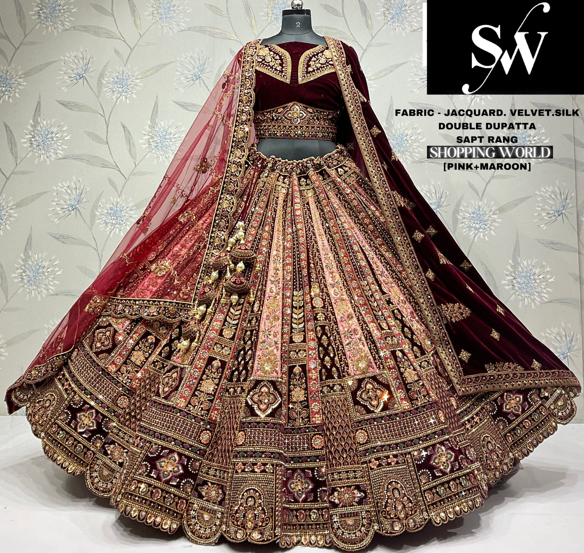 Encantadora lehenga nupcial pesada de color rosa oscuro (cliente satisfecha)