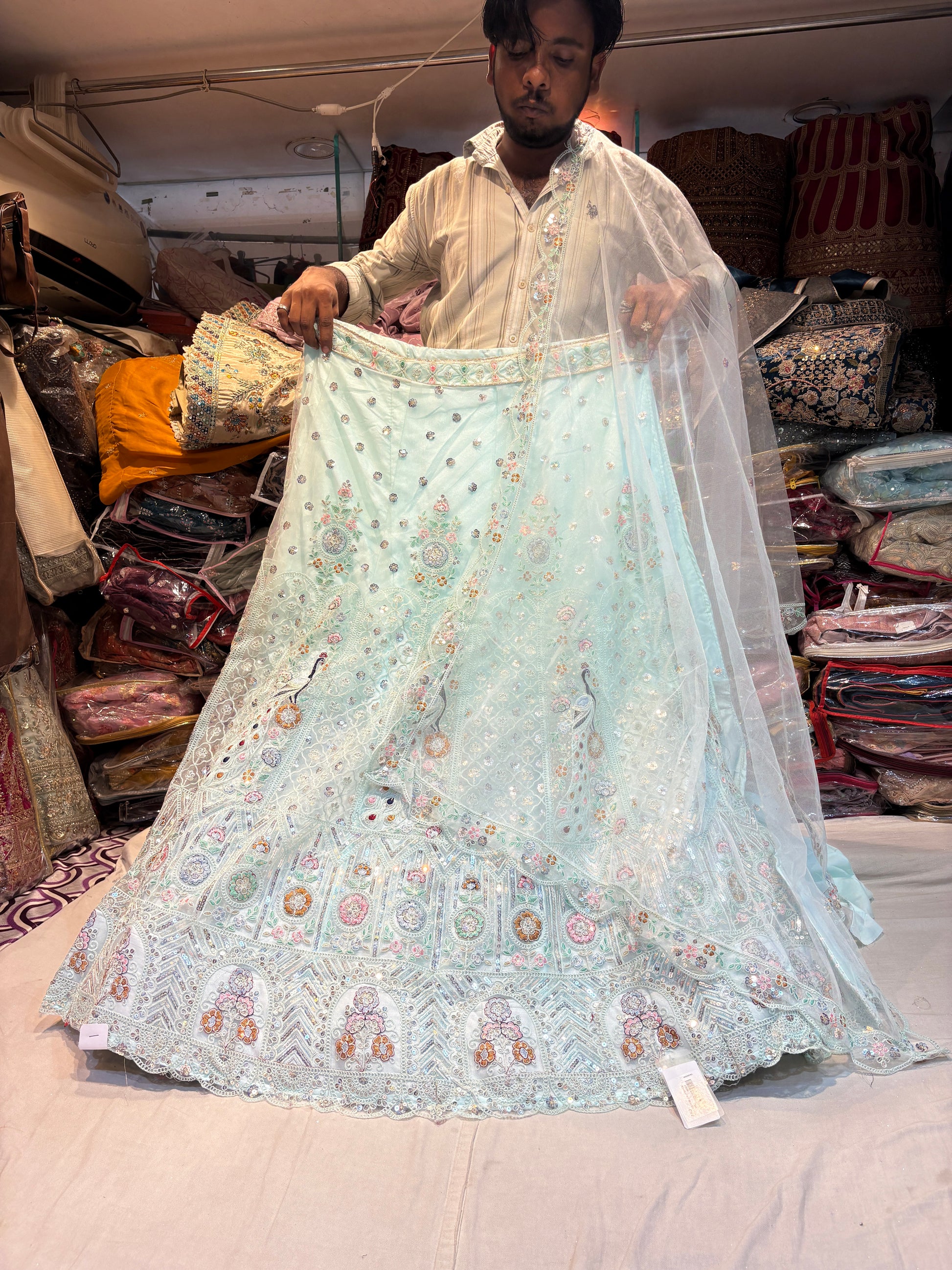 - ₹25,000 – ₹50,000: Premium partywear lehengas with intricate craftsmanship